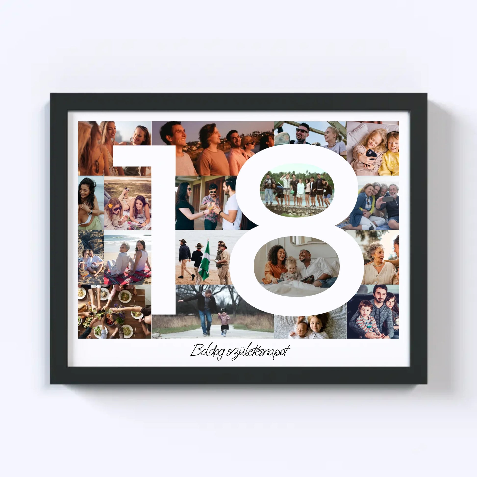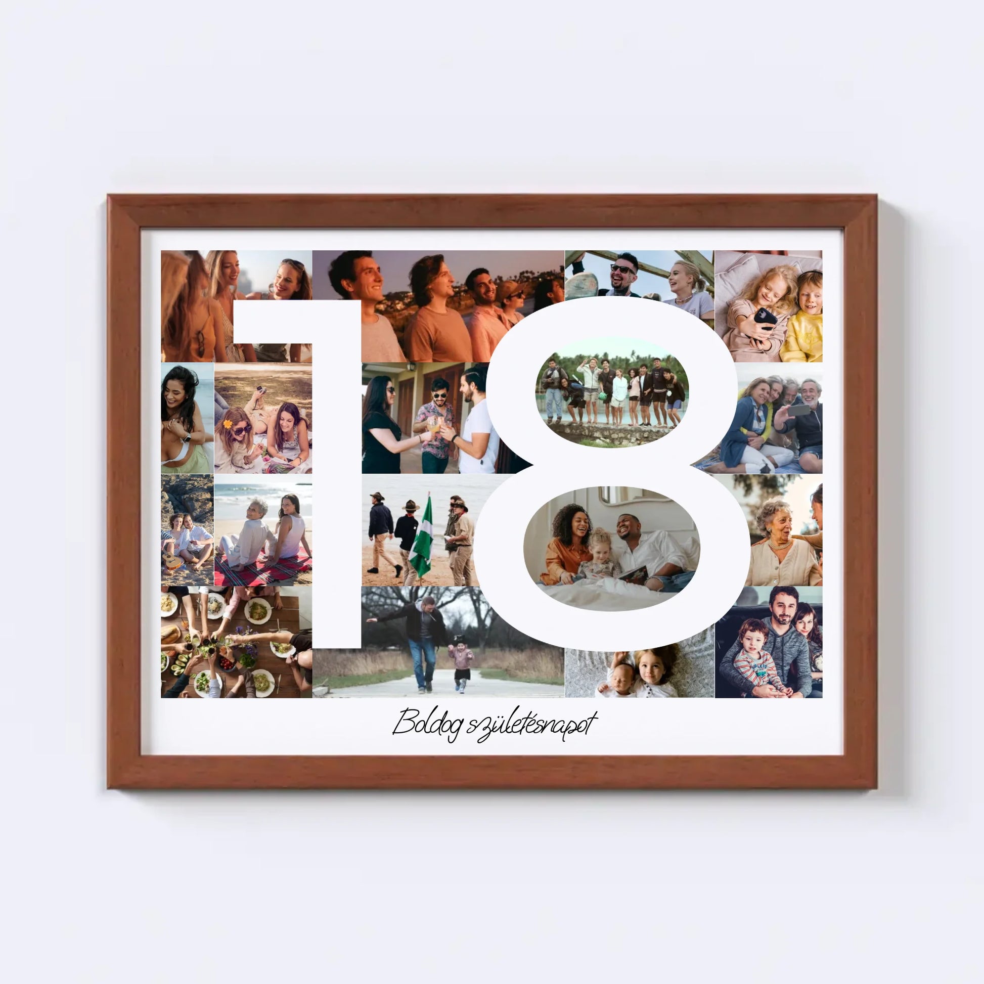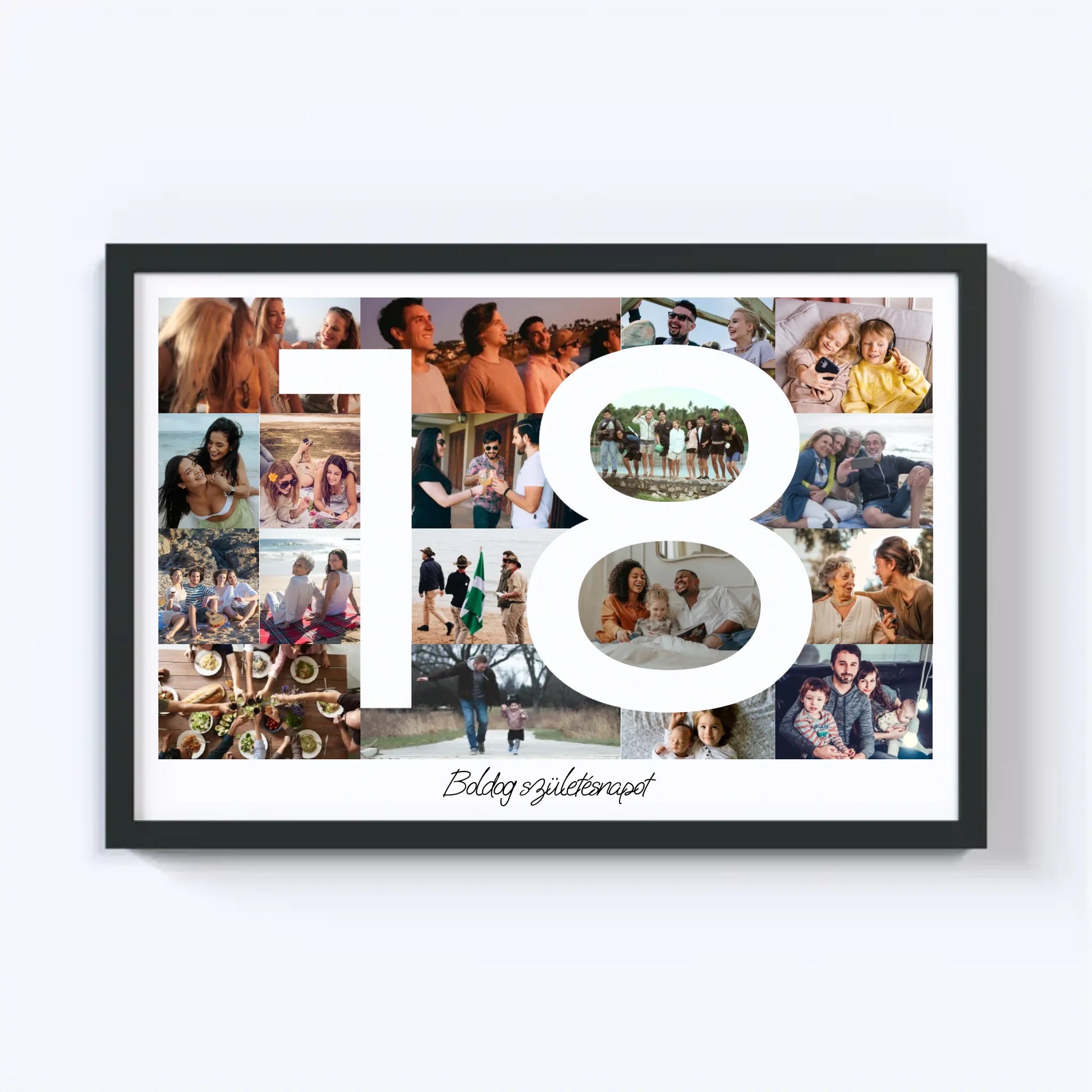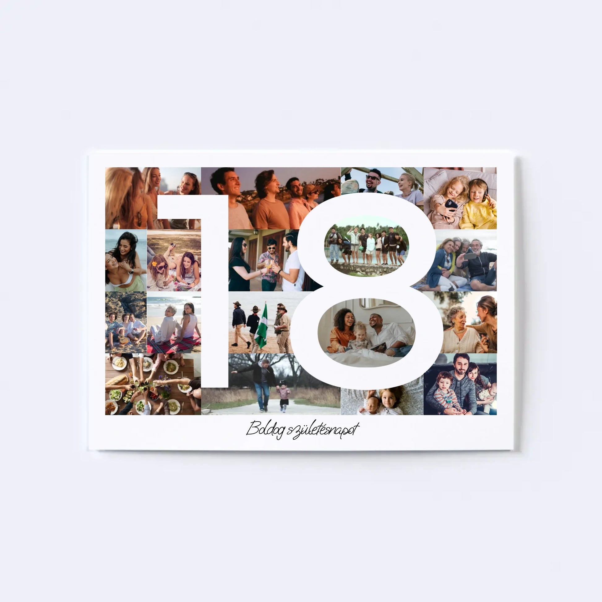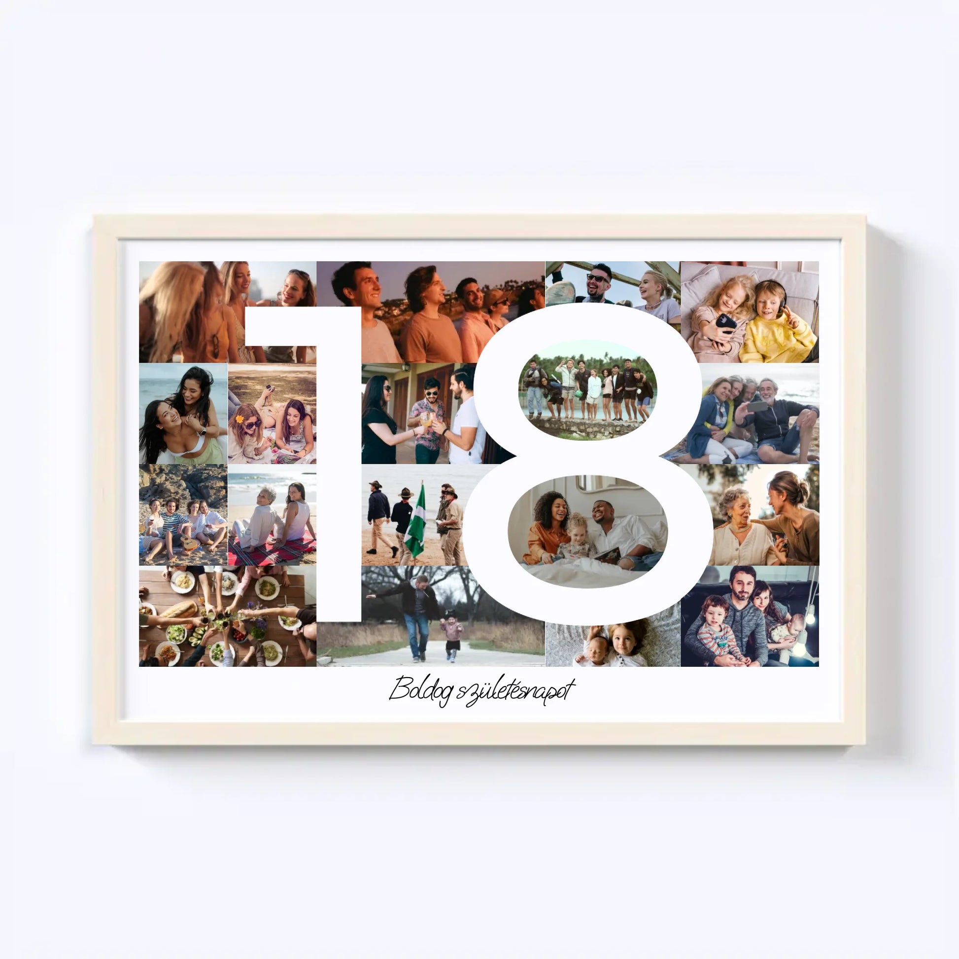 Egyedi számos fotókollázs, amelyben egy különleges szám – legyen az egy emlékezetes születésnap vagy egy kerek évforduló – kel életre a legszebb közös pillanataitokkal. Tökéletes ajándék bármilyen jeles alkalomra. Teljesen személyre szabható, így igazán szívhez szóló és maradandó meglepetés lesz annak, akinek szánod.