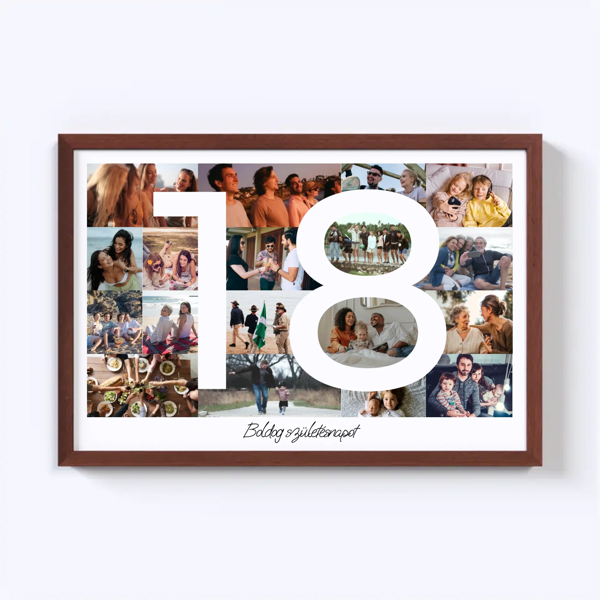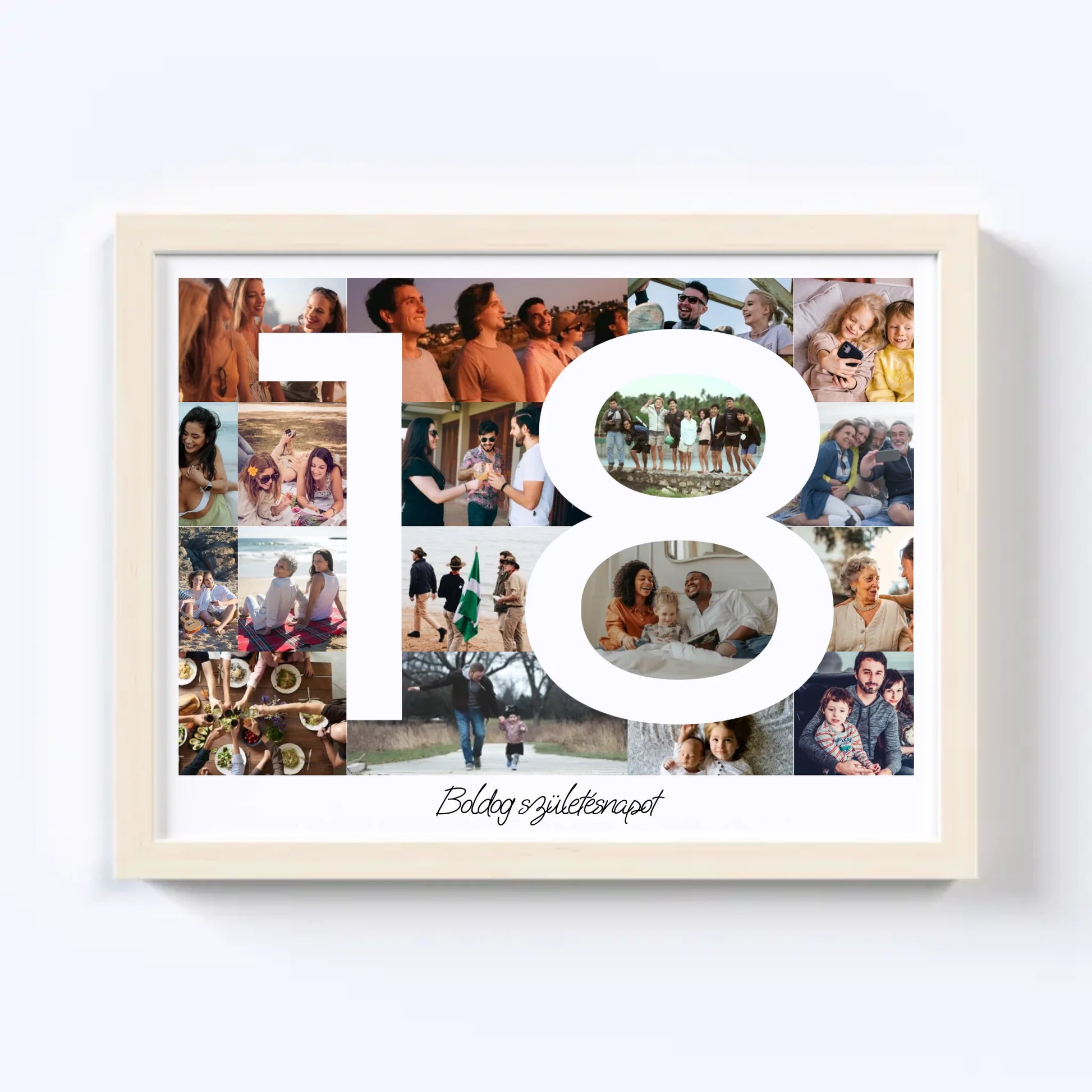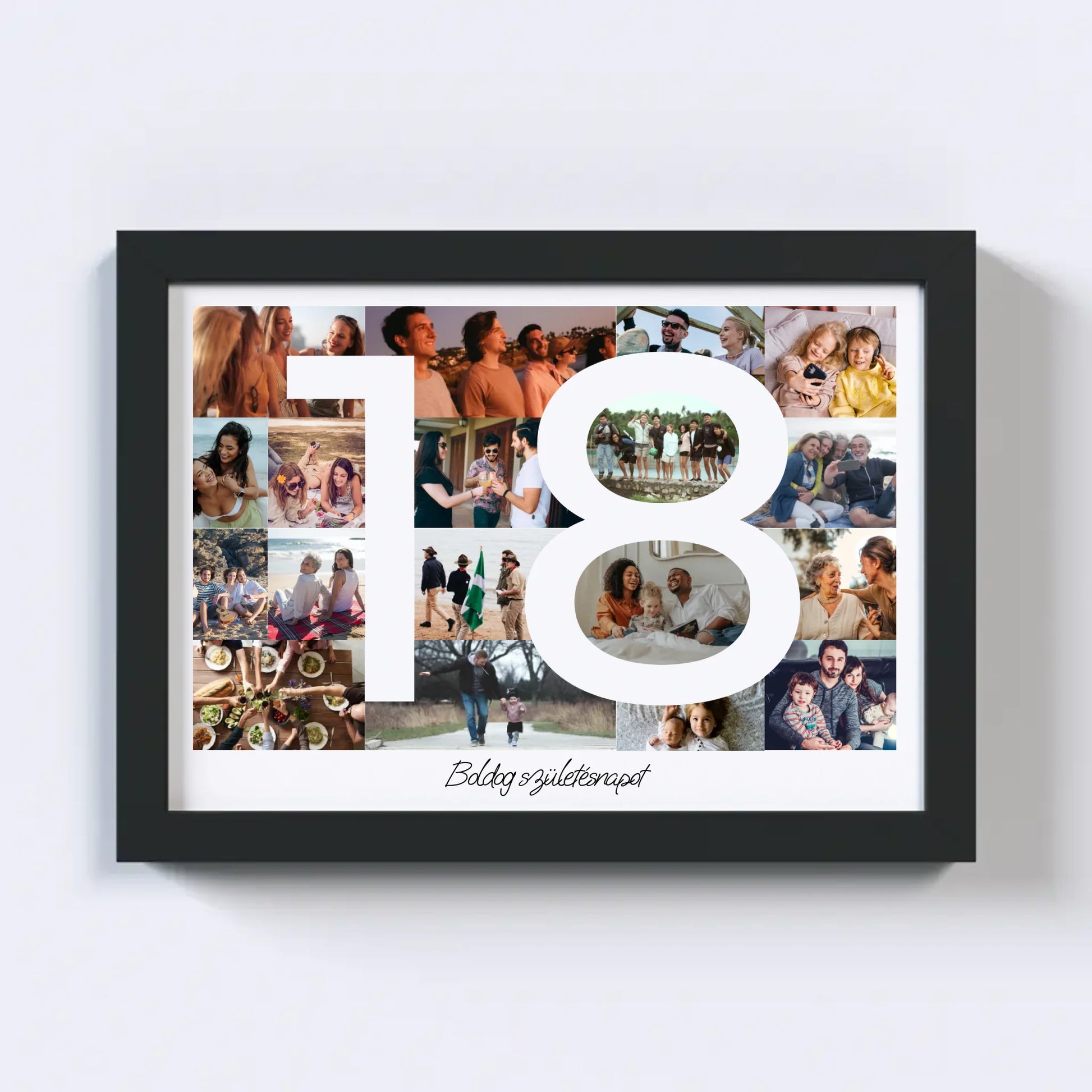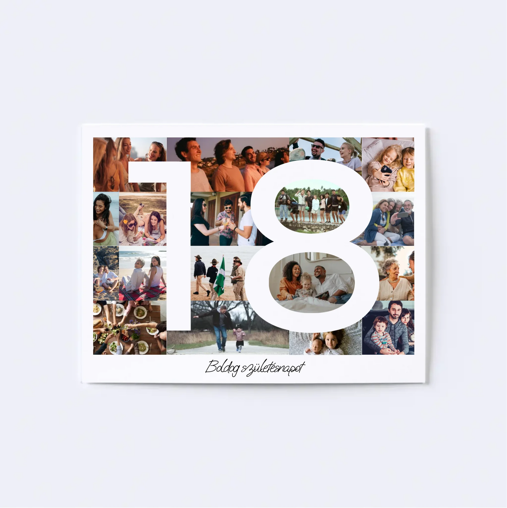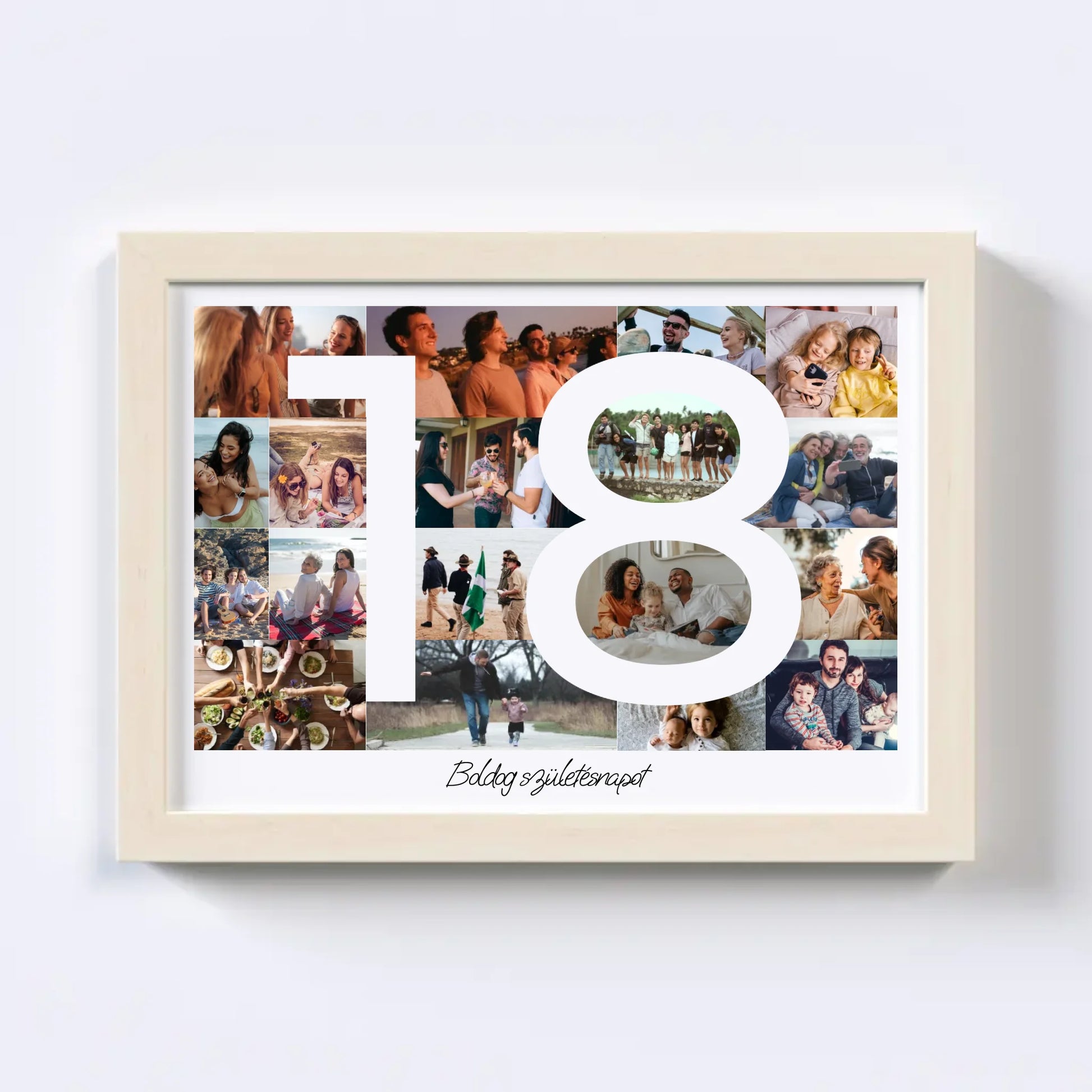 Egyedi számos fotókollázs, amelyben egy különleges szám – legyen az egy emlékezetes születésnap vagy egy kerek évforduló – kel életre a legszebb közös pillanataitokkal. Tökéletes ajándék bármilyen jeles alkalomra. Teljesen személyre szabható, így igazán szívhez szóló és maradandó meglepetés lesz annak, akinek szánod.