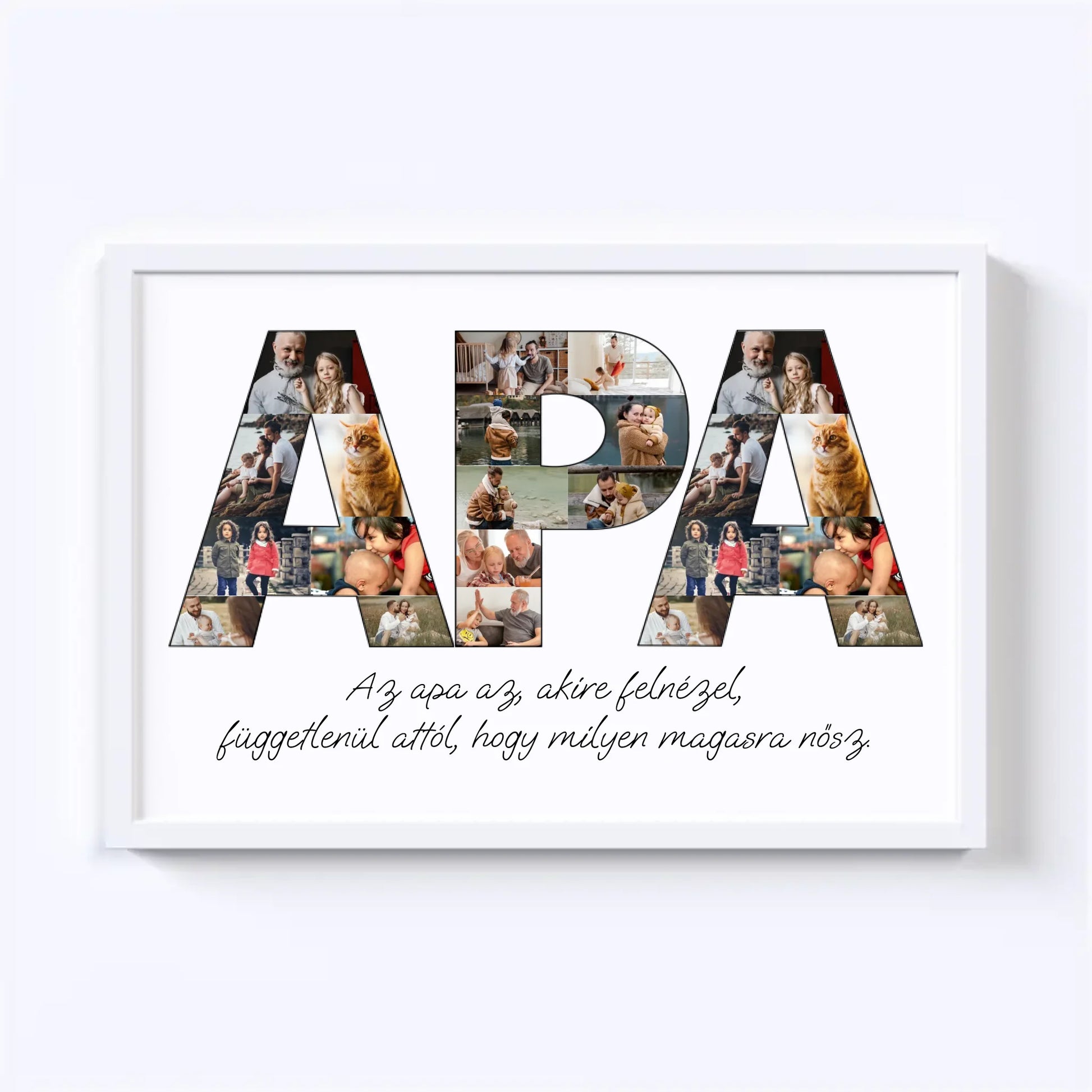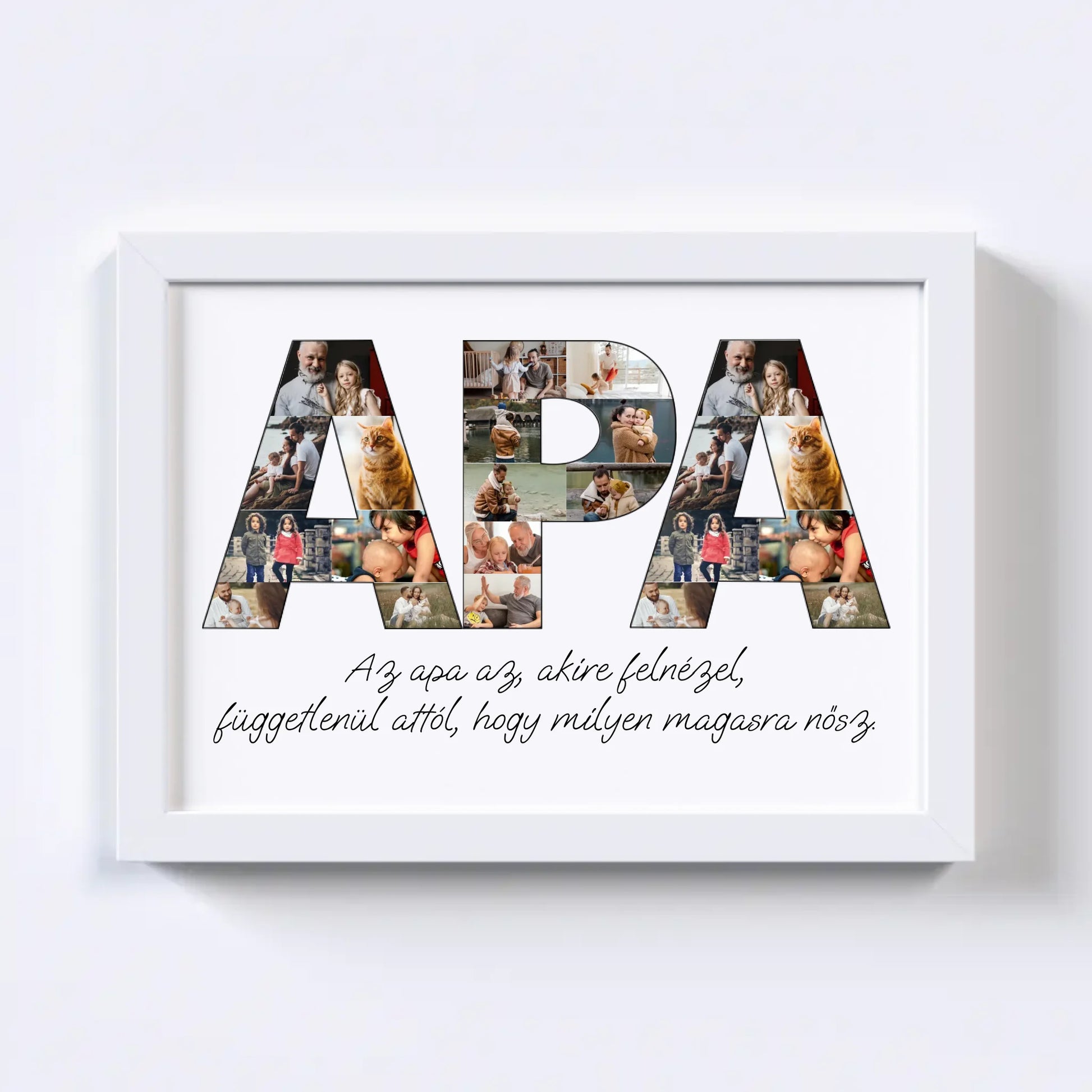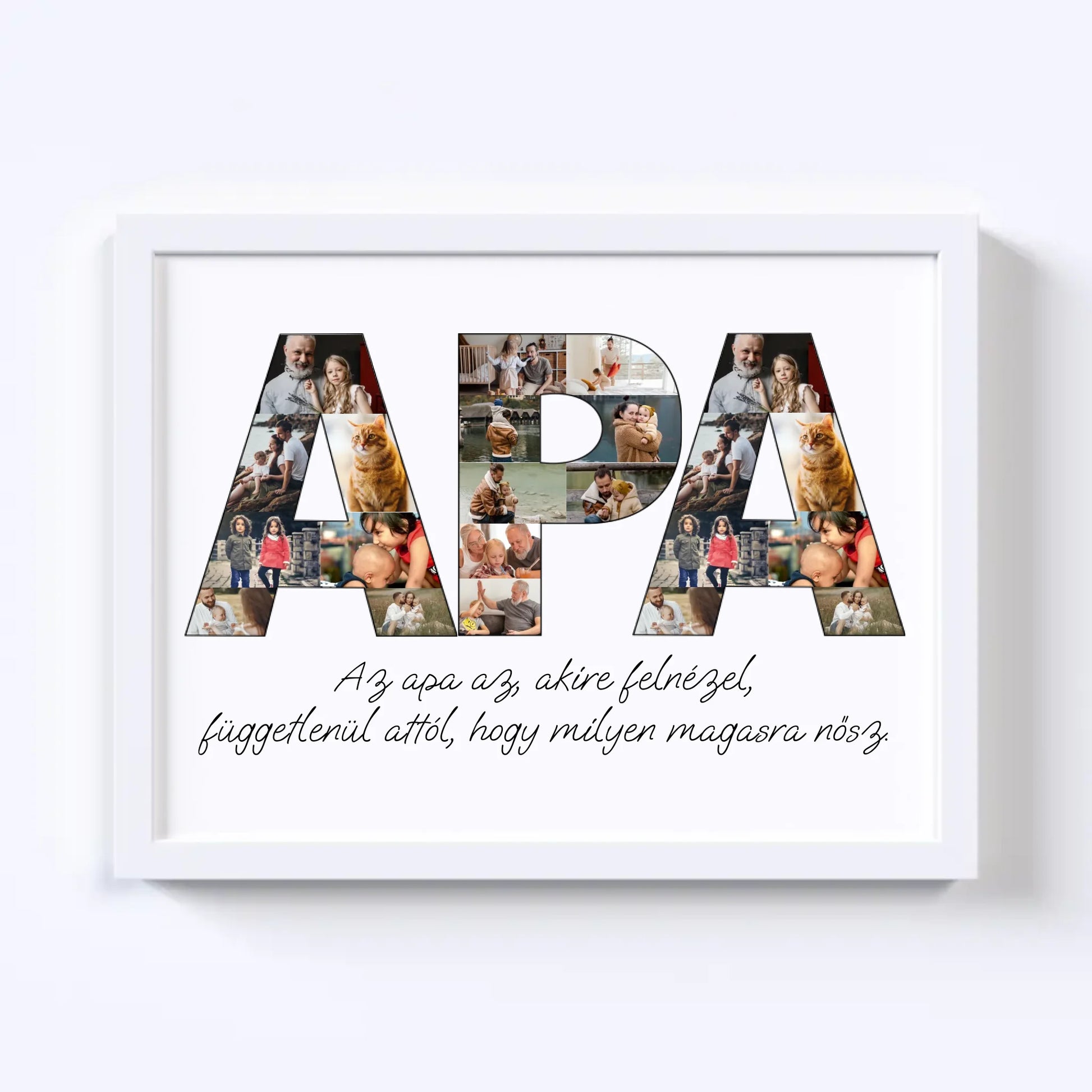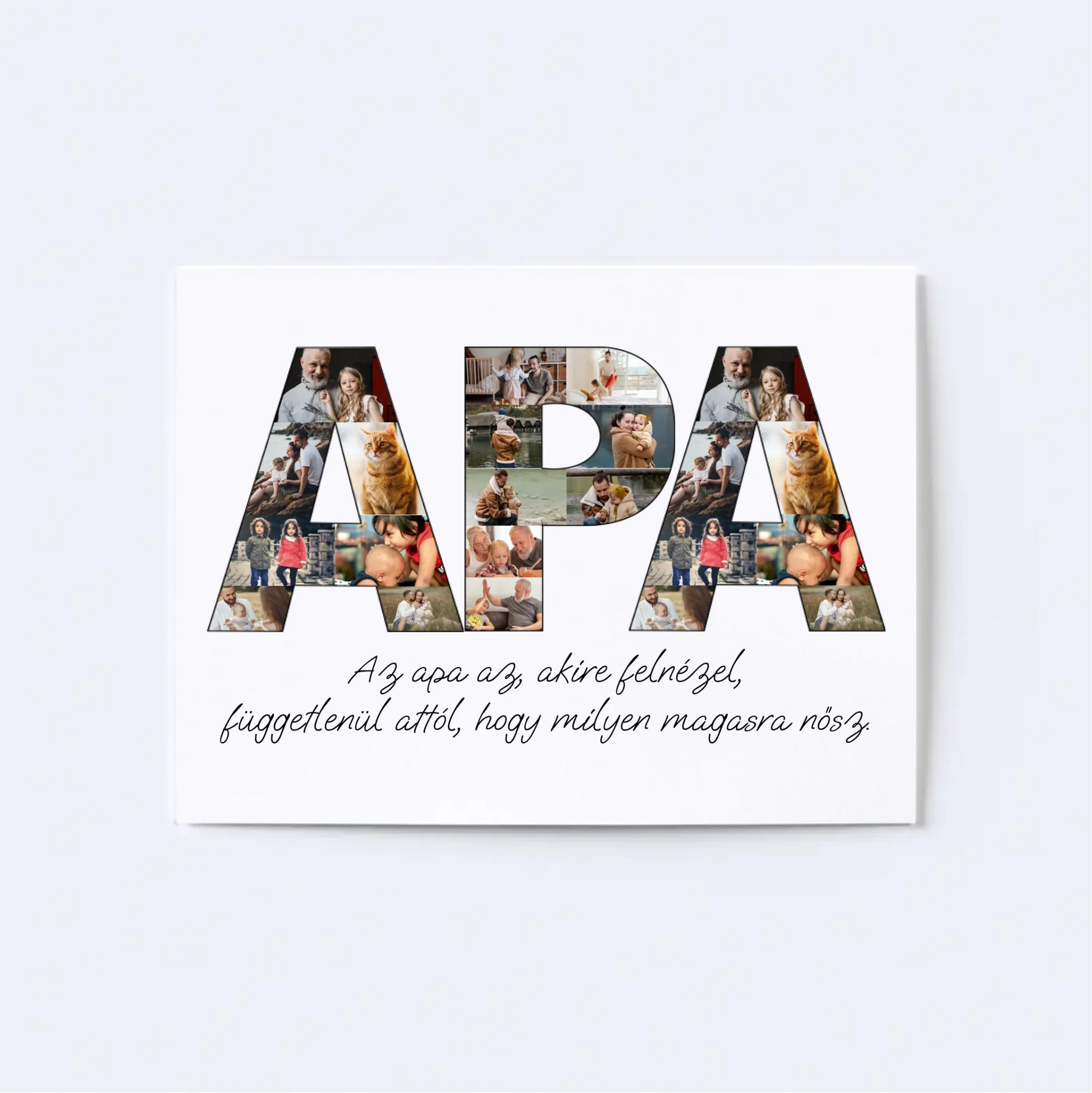 Az egyedi fotókollázs készítőt használva tökéletes faliképet készíthetsz apukádnak ajándékba. Kiváló, kreatív ajándék ötlet apukád születésnapjára, illetve Apák napjára.