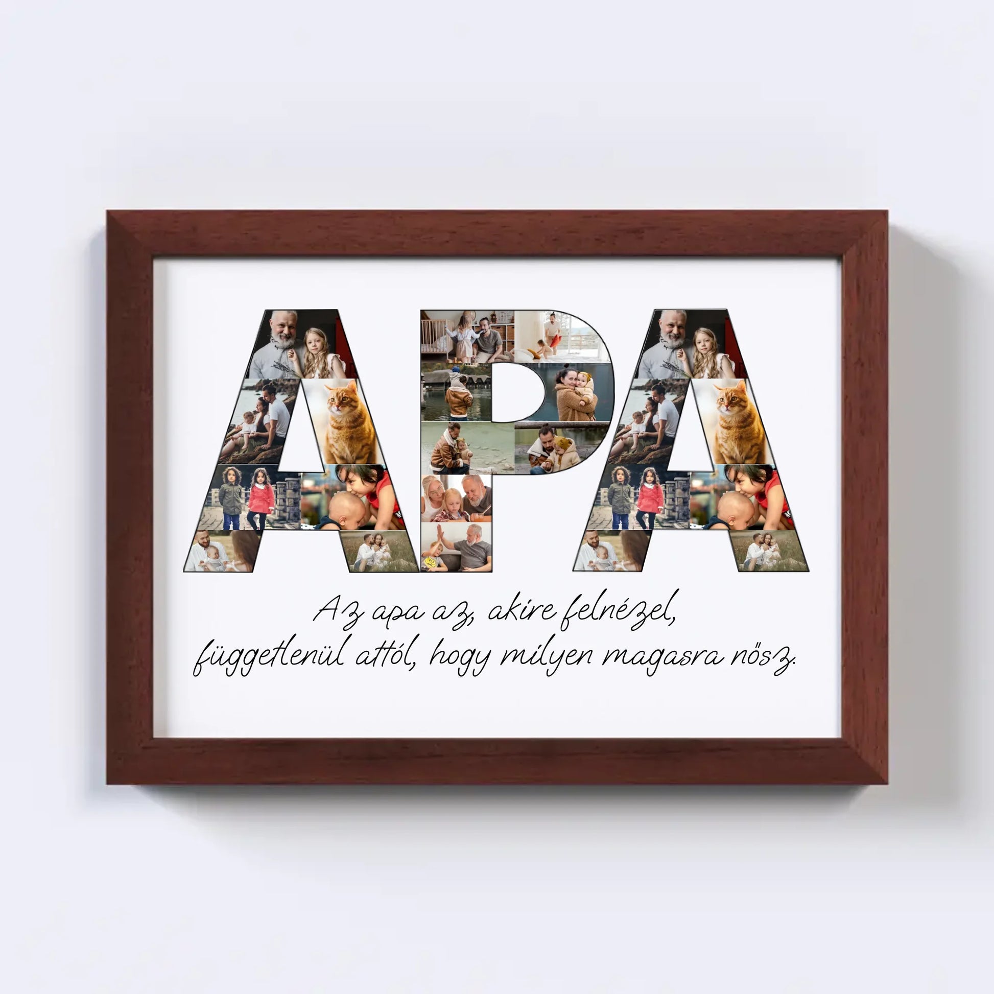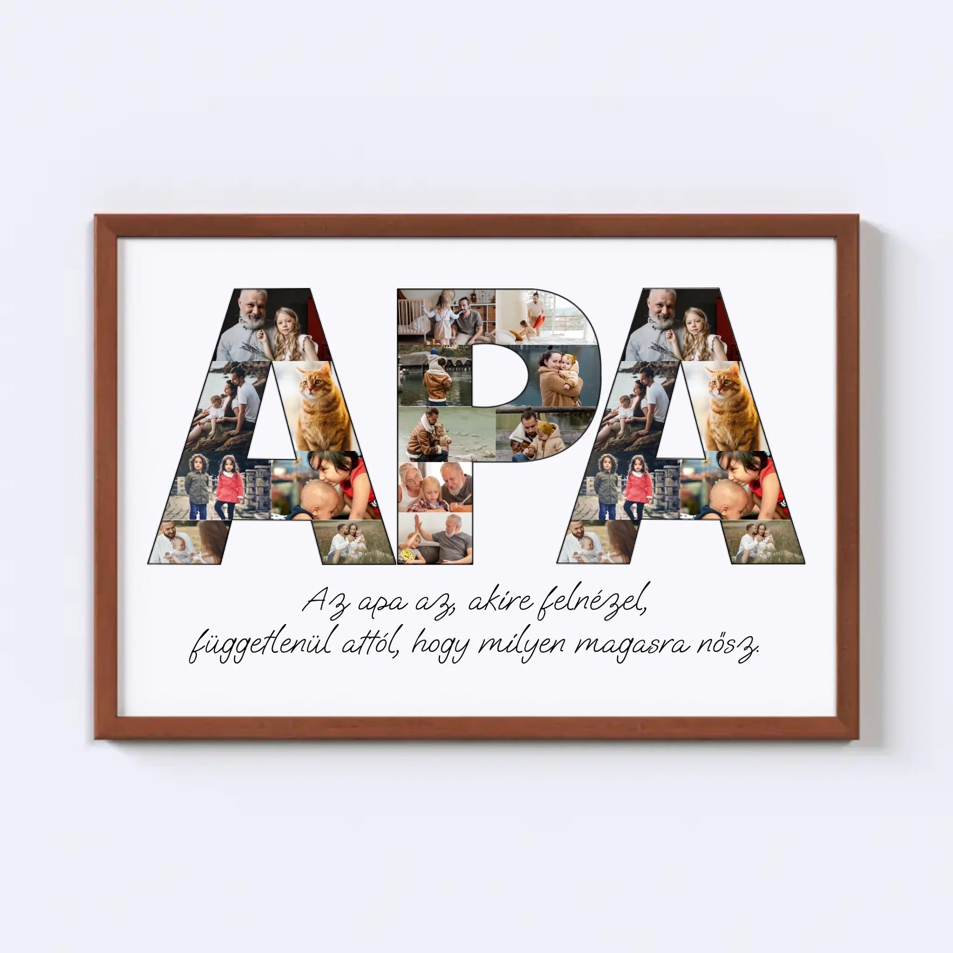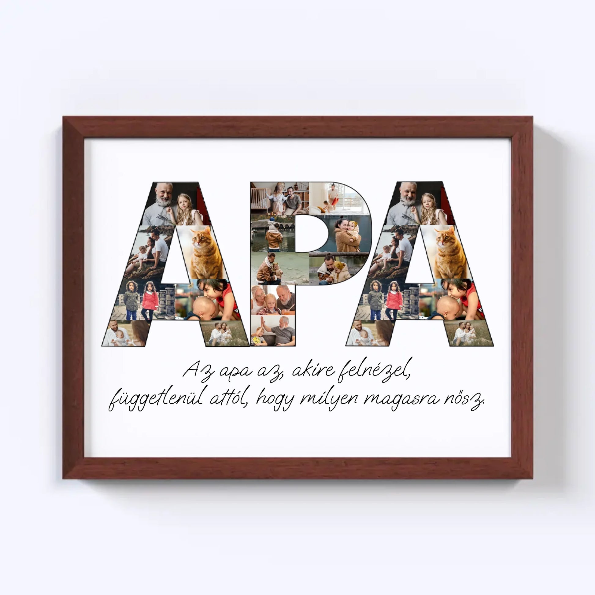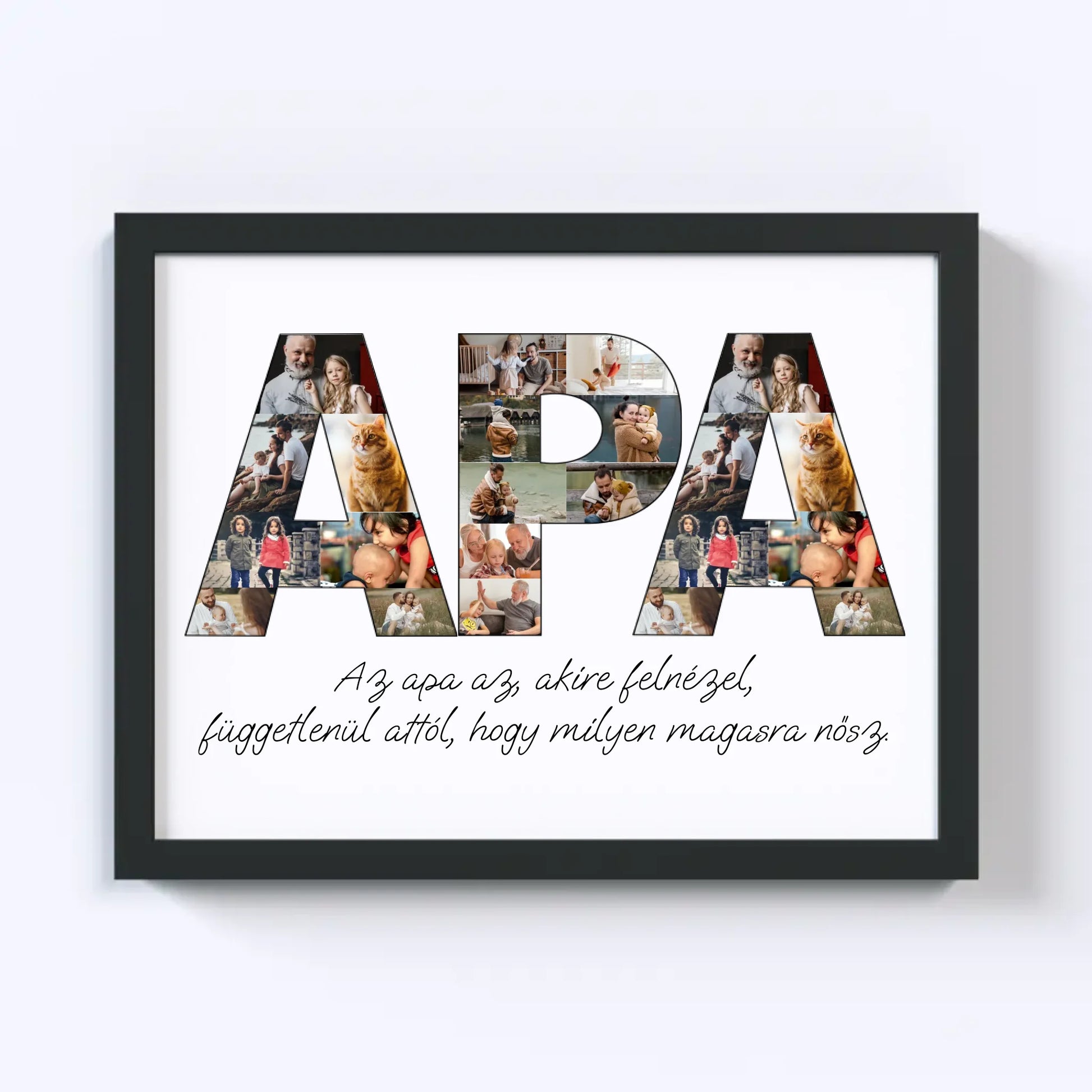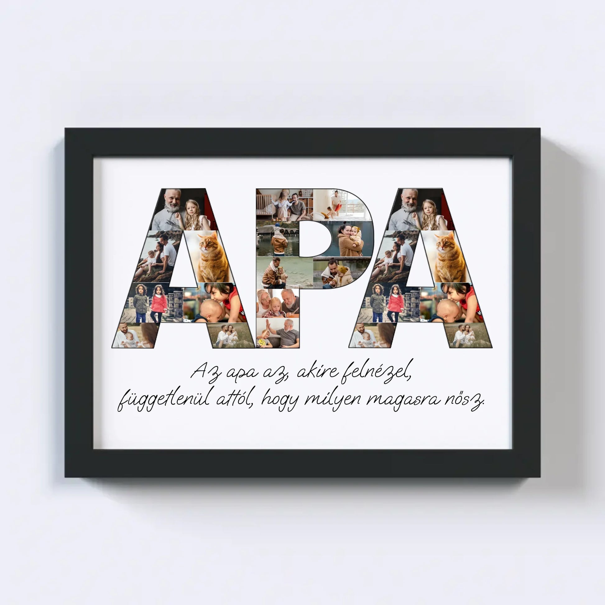Az egyedi fotókollázs készítőt használva tökéletes faliképet készíthetsz apukádnak ajándékba. Kiváló, kreatív ajándék ötlet apukád születésnapjára, illetve Apák napjára.