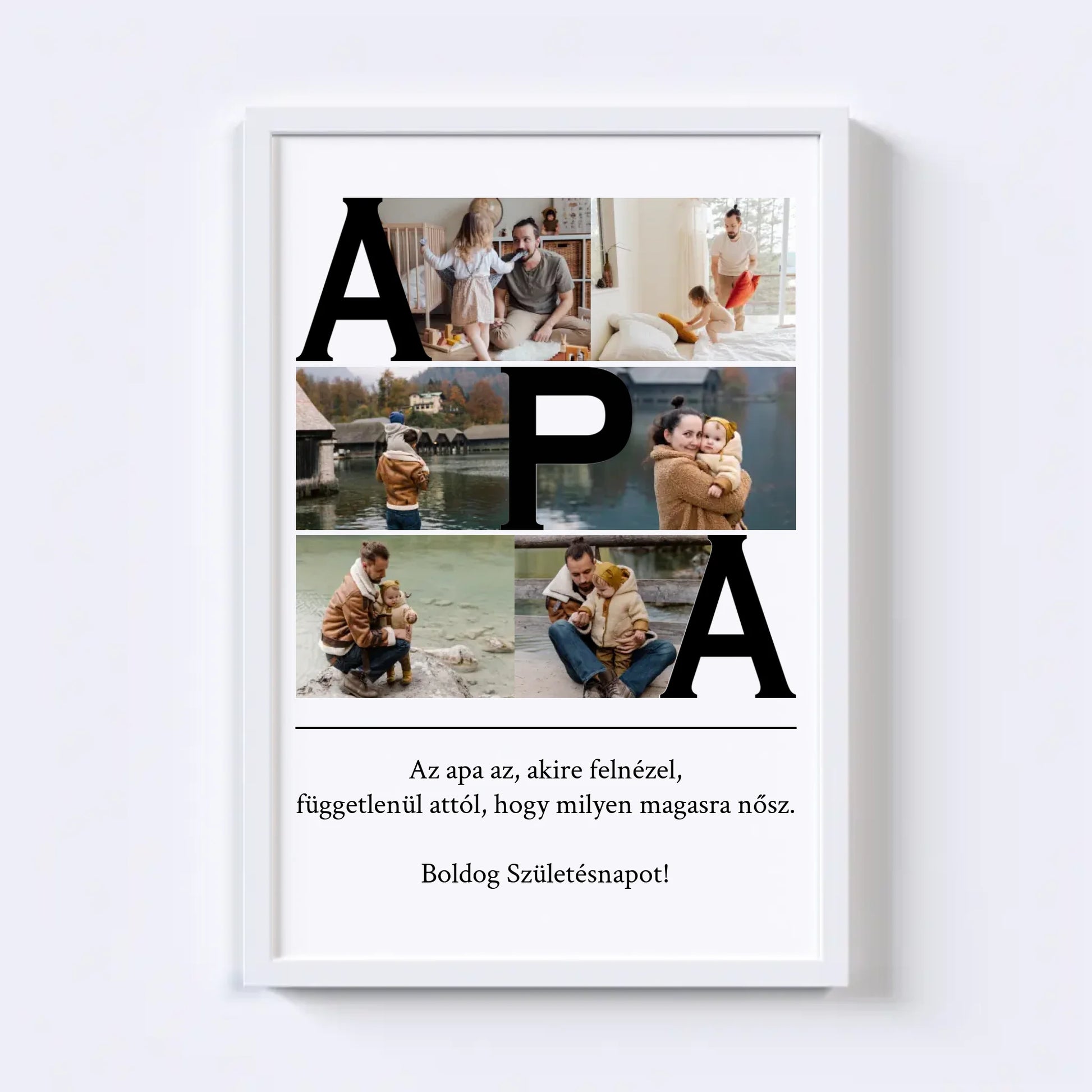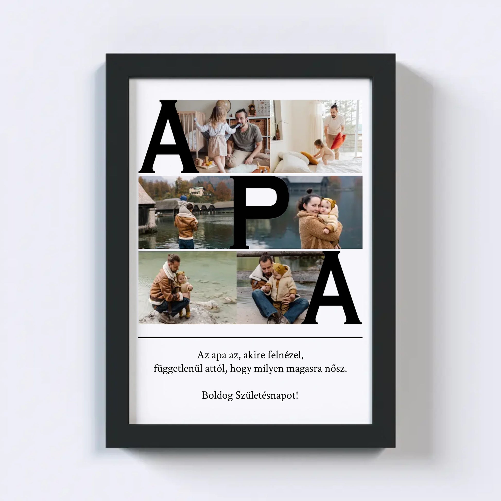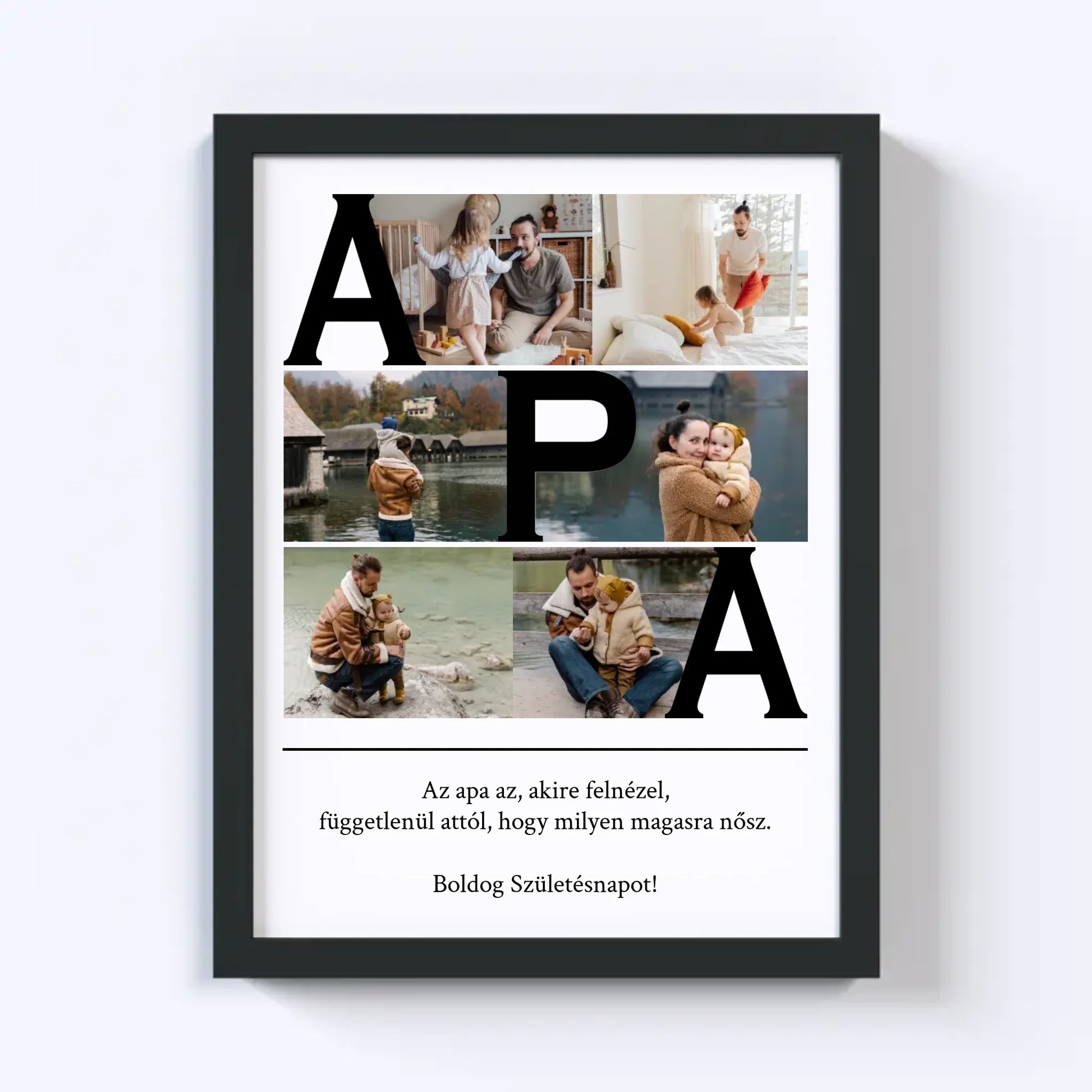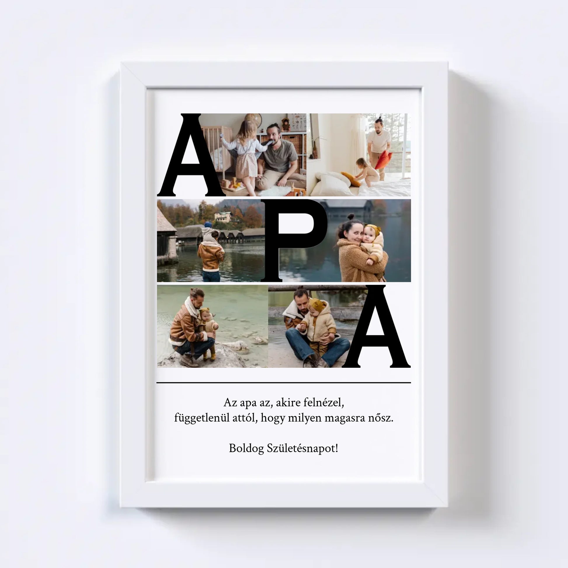 Az egyedi fotókollázs készítőt használva tökéletes faliképet készíthetsz apukádnak ajándékba. Kiváló, kreatív ajándék ötlet apukád születésnapjára, illetve Apák napjára.