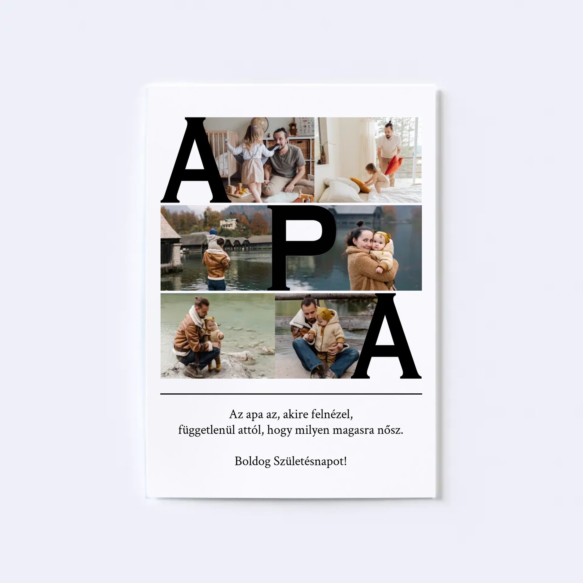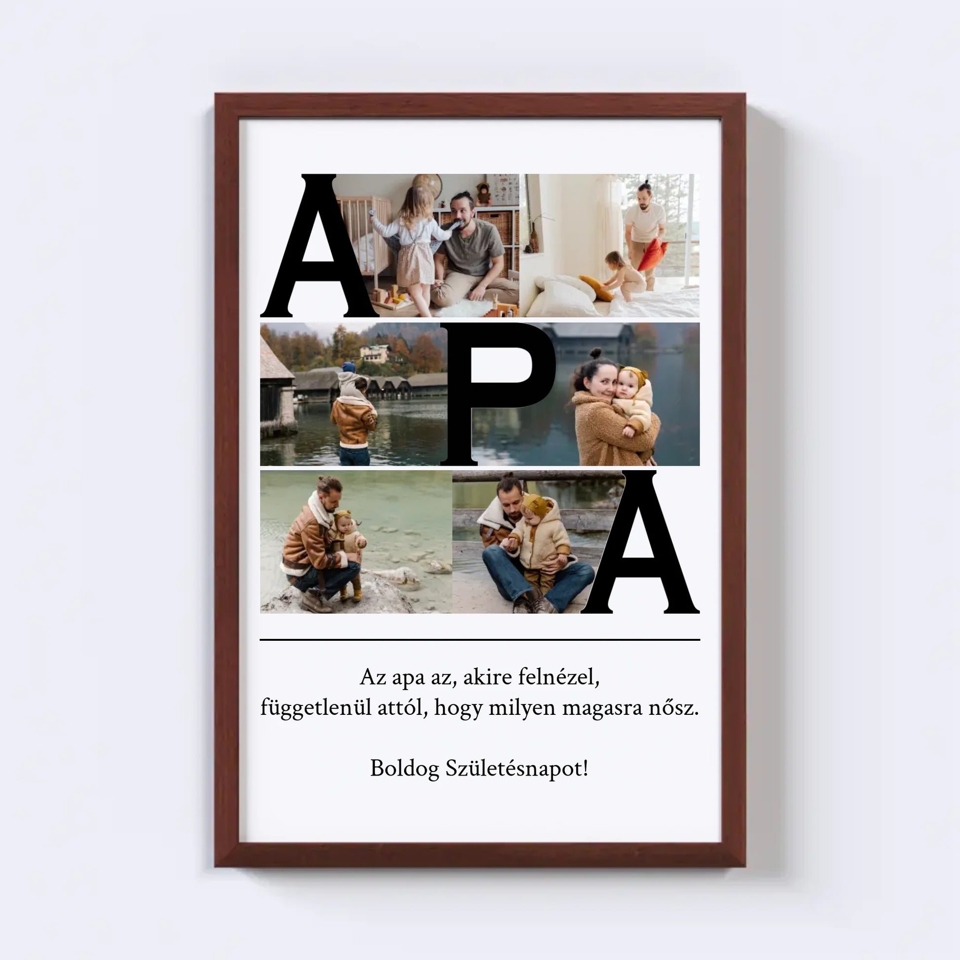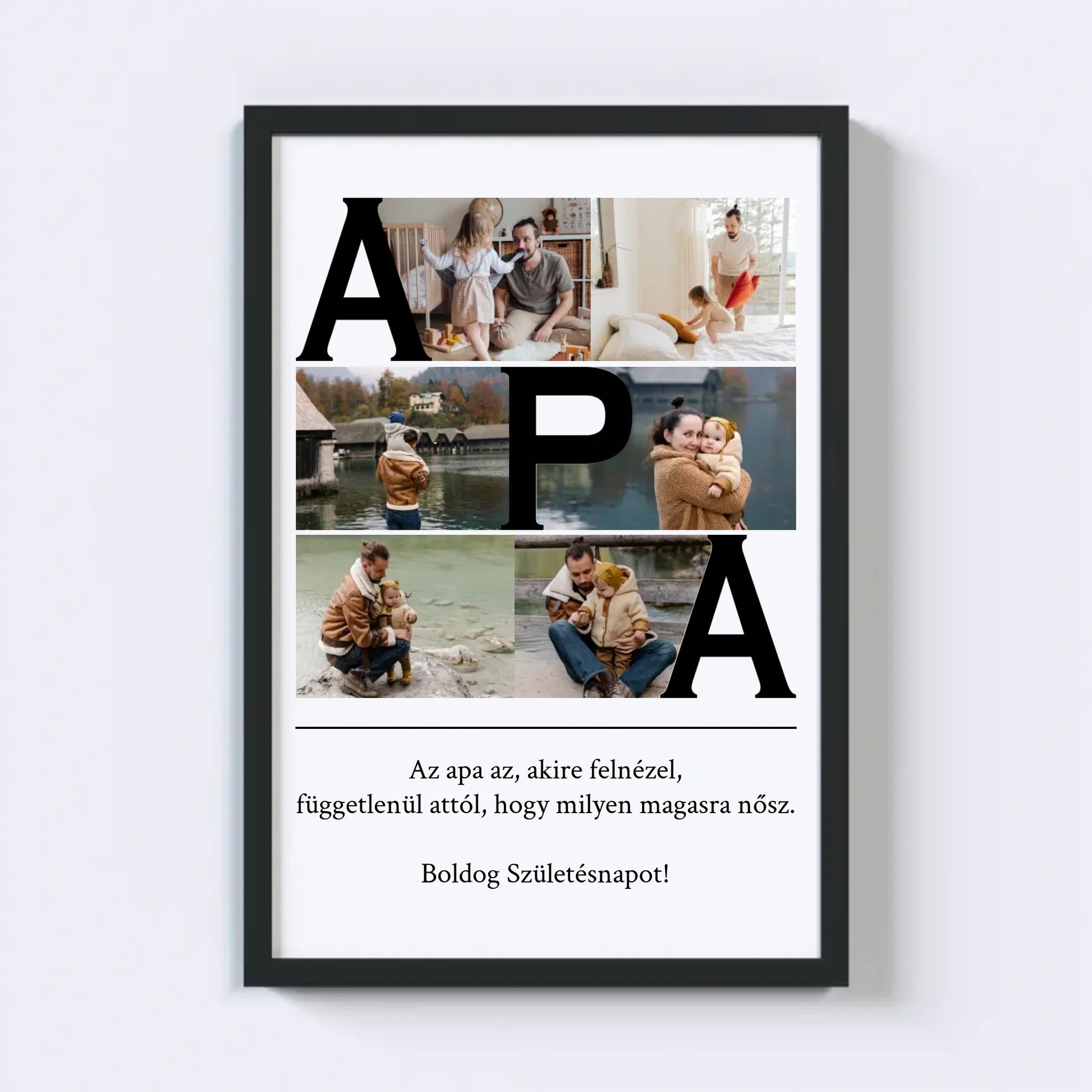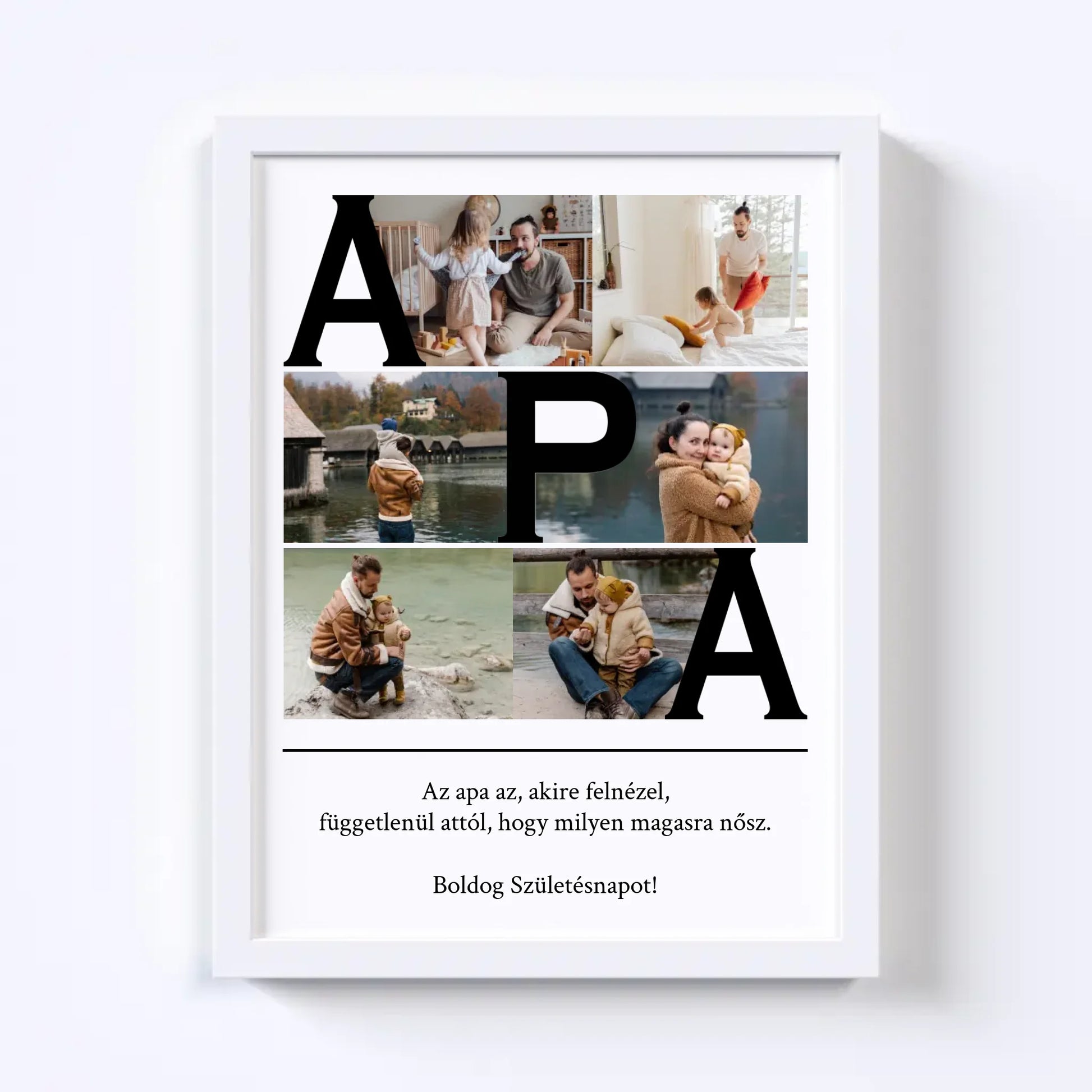 Az egyedi fotókollázs készítőt használva tökéletes faliképet készíthetsz apukádnak ajándékba. Kiváló, kreatív ajándék ötlet apukád születésnapjára, illetve Apák napjára.