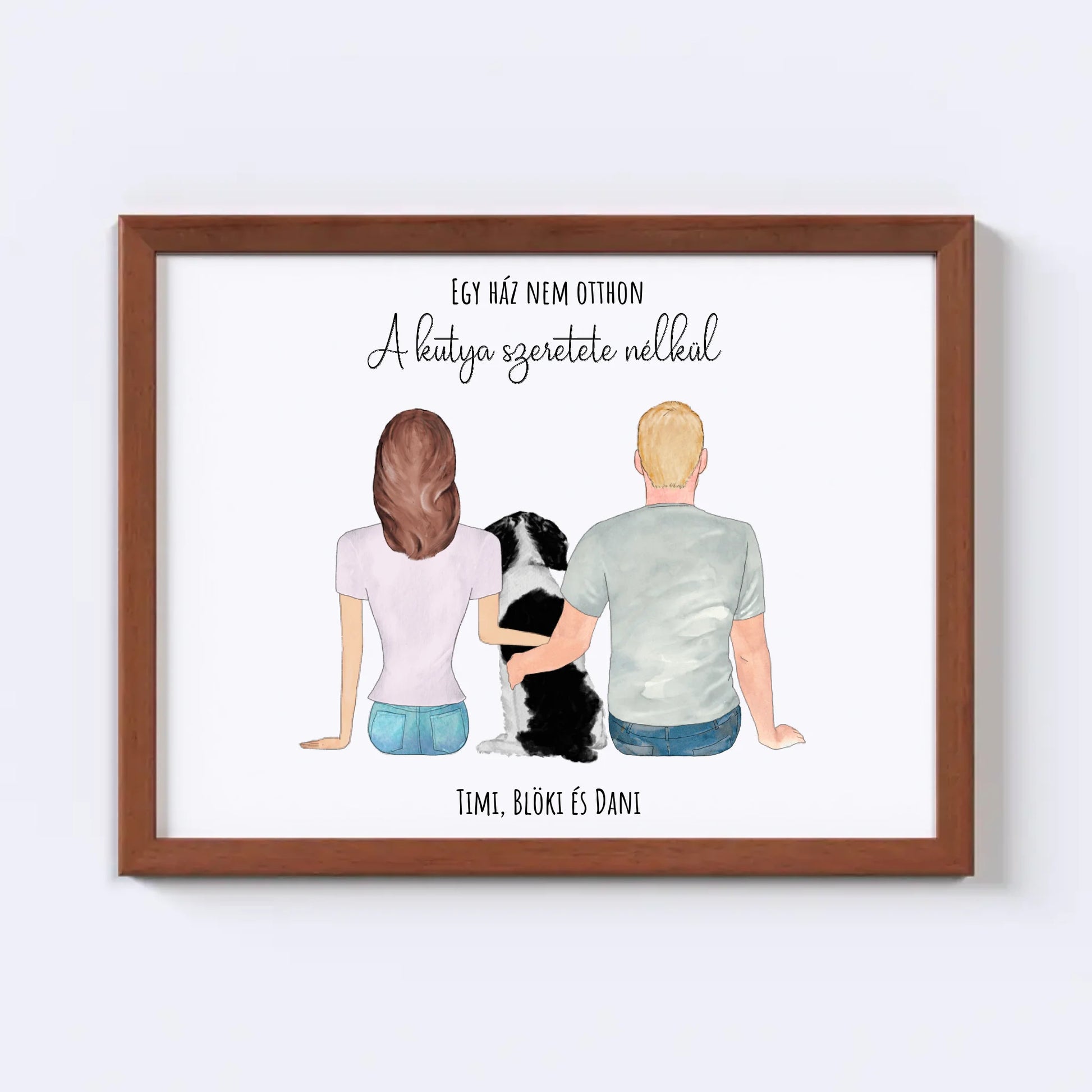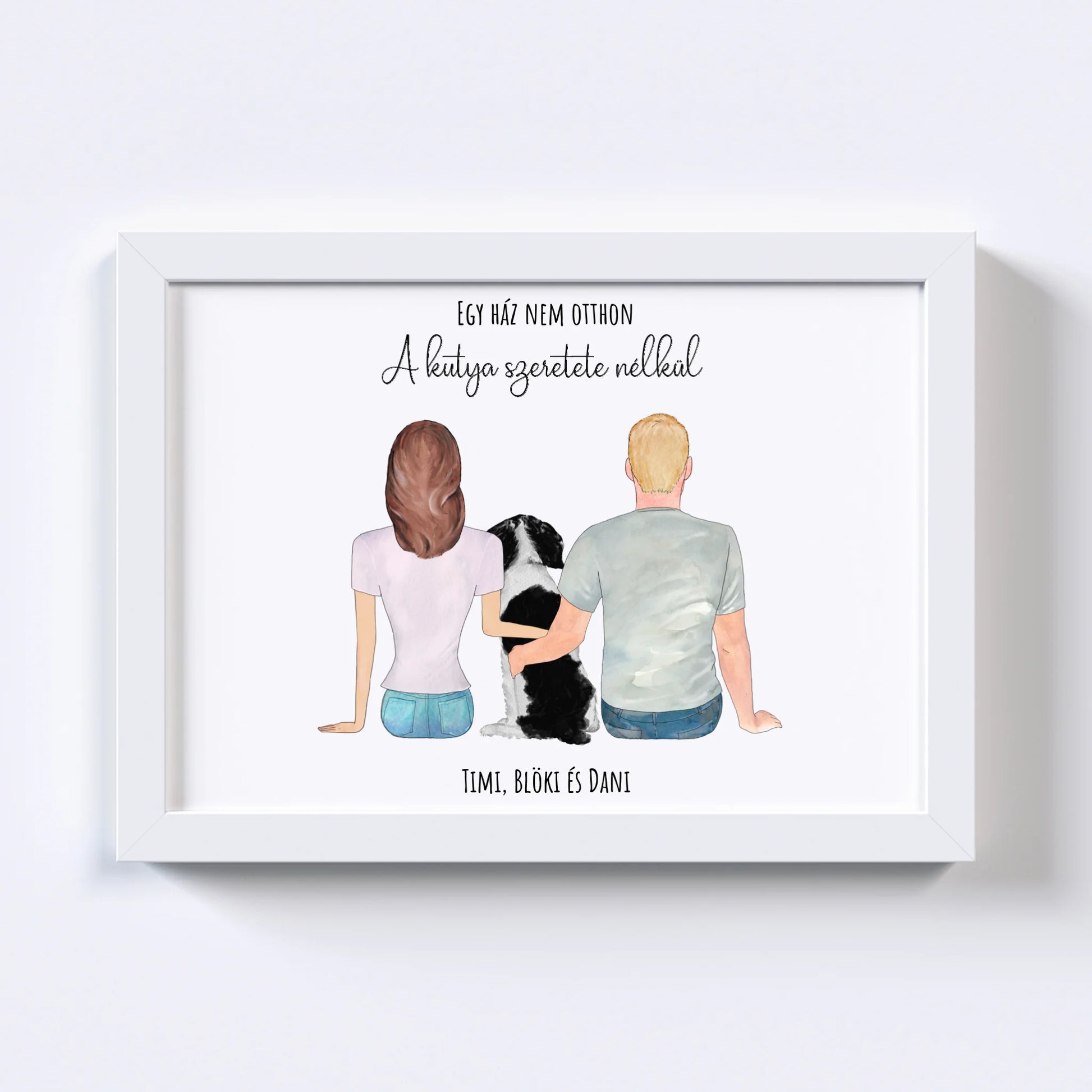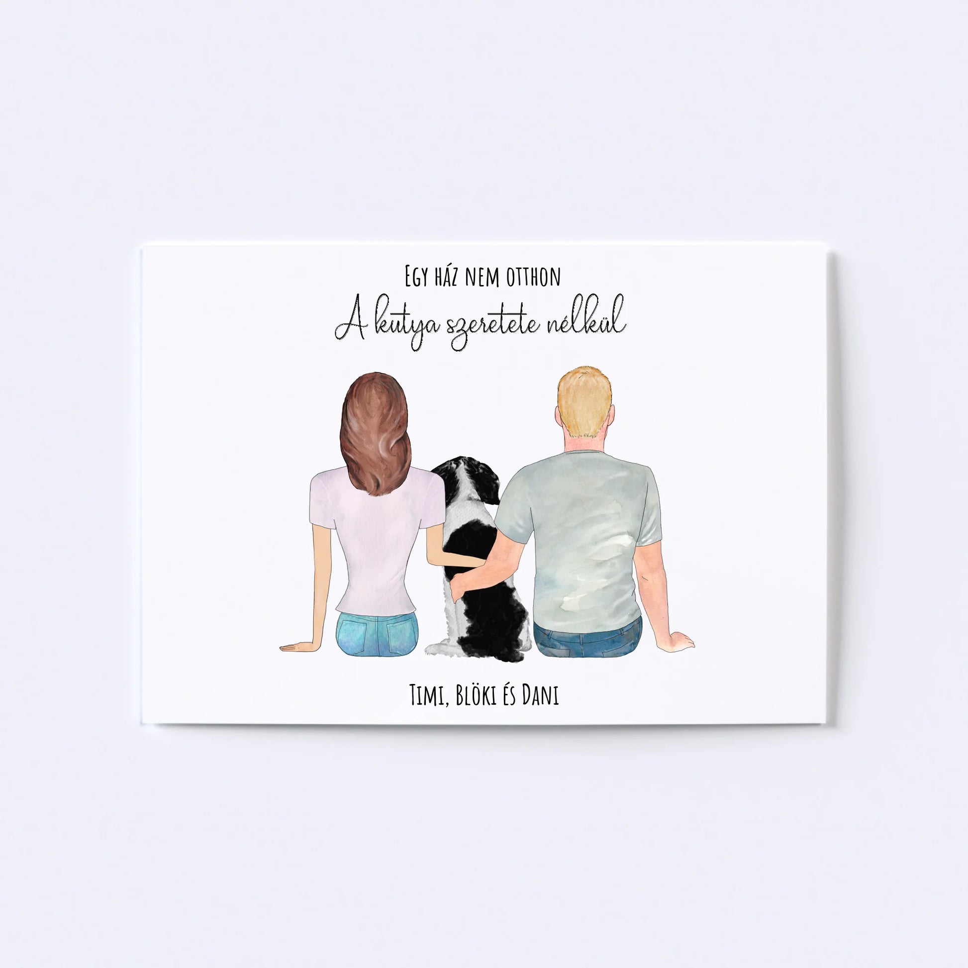 Szerelmes Pár És Kutyájuk Egyedi Falikép - Idézettel