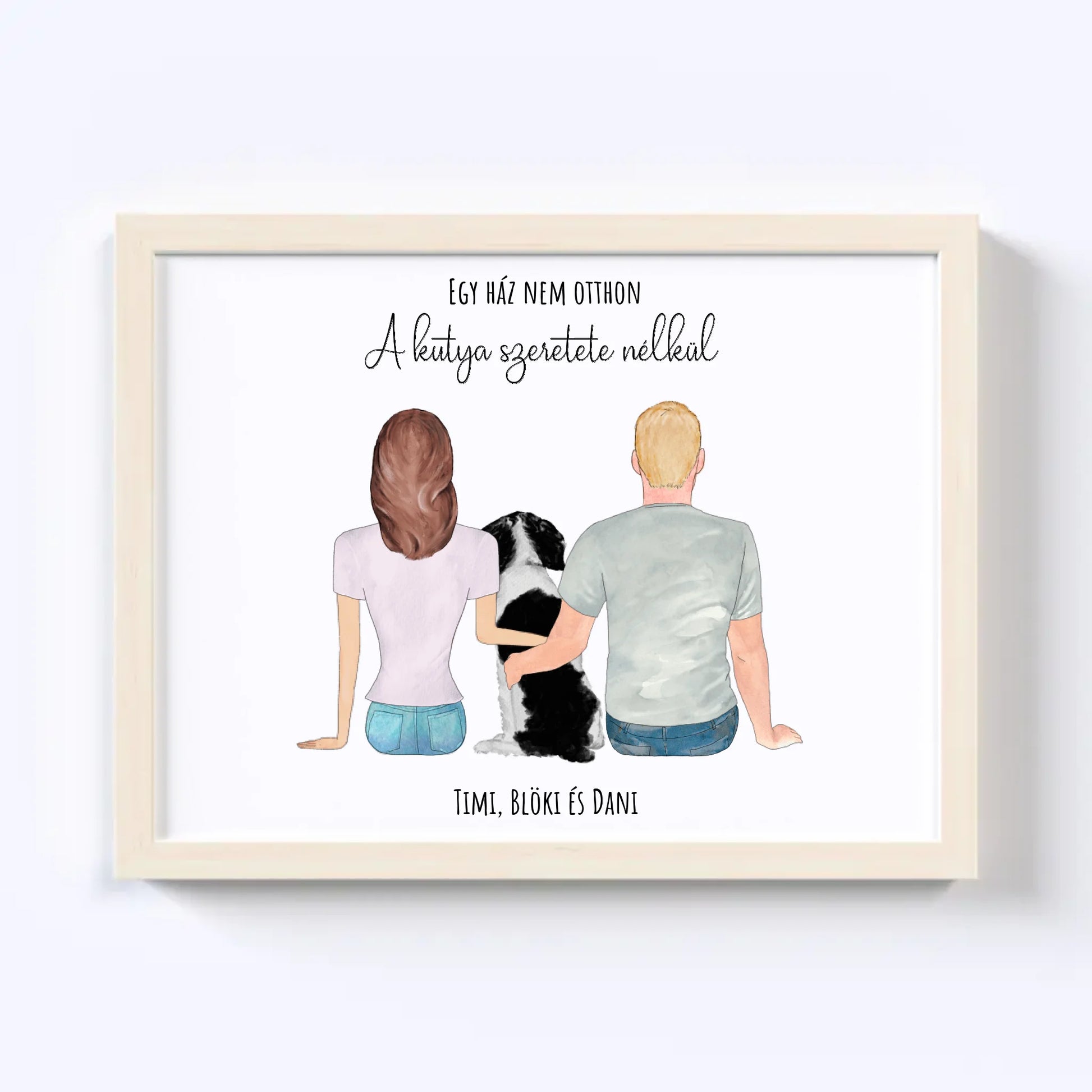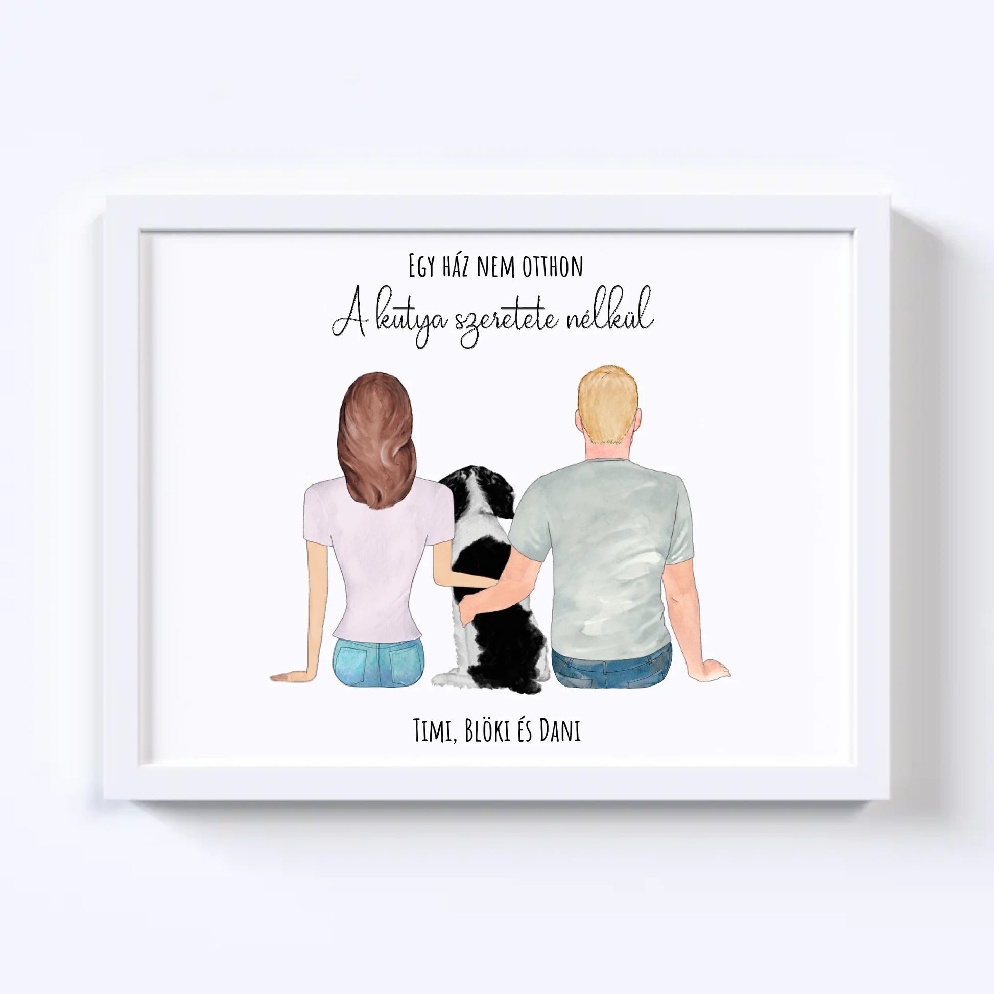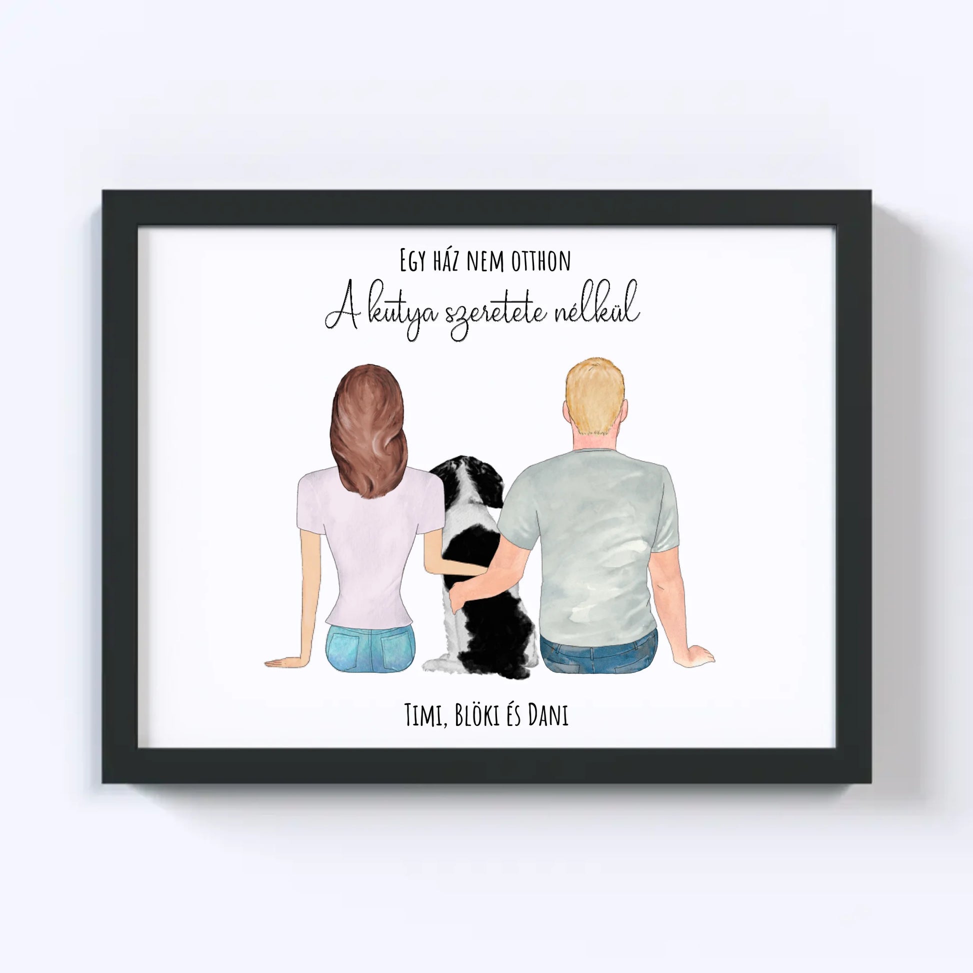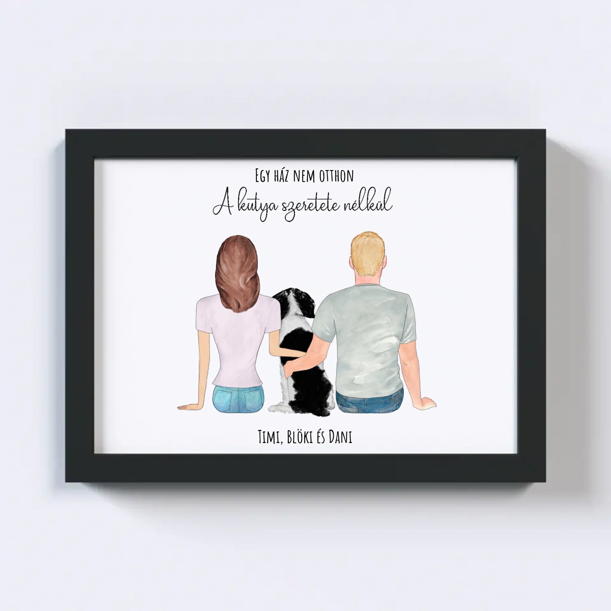 Szerelmes Pár És Kutyájuk Egyedi Falikép - Idézettel
