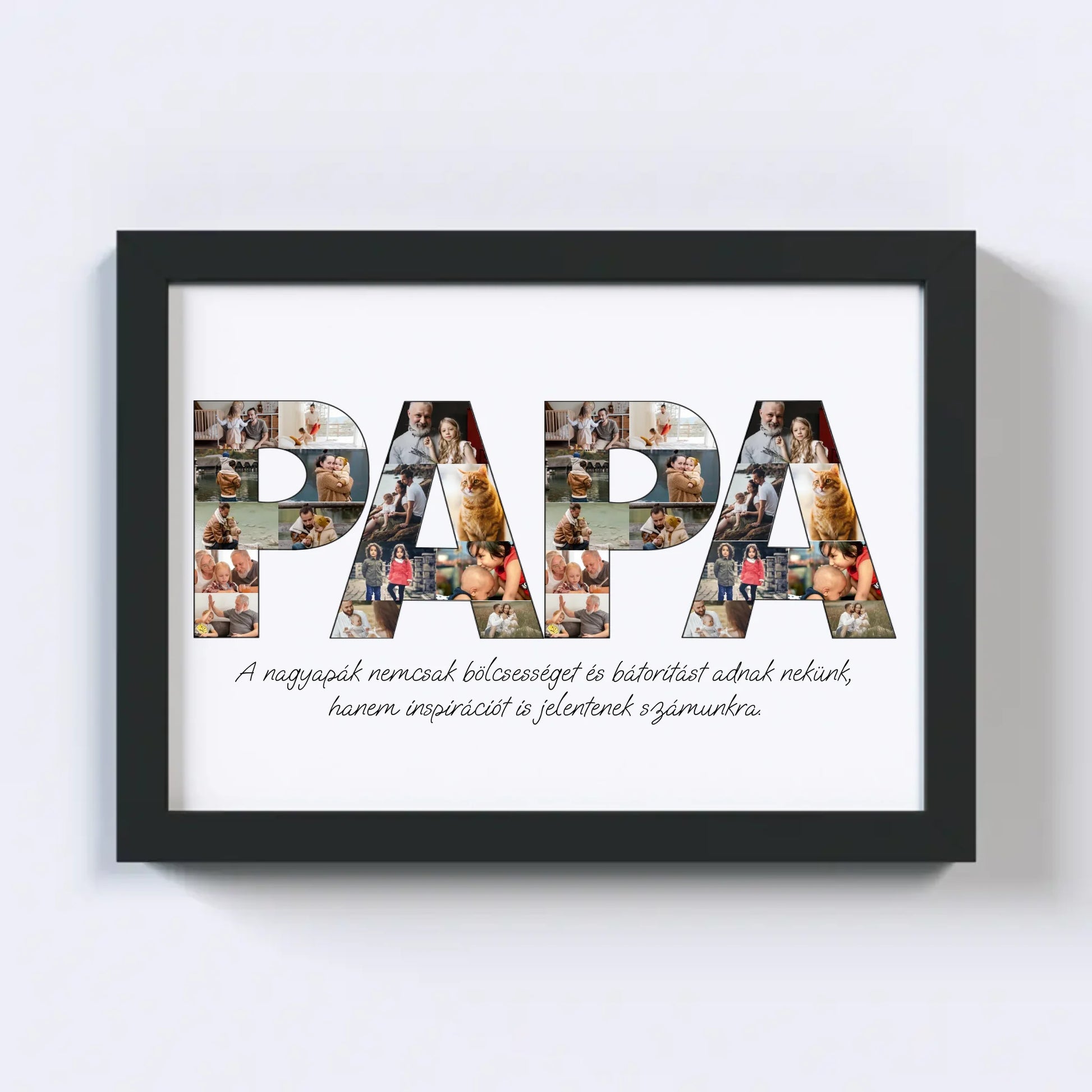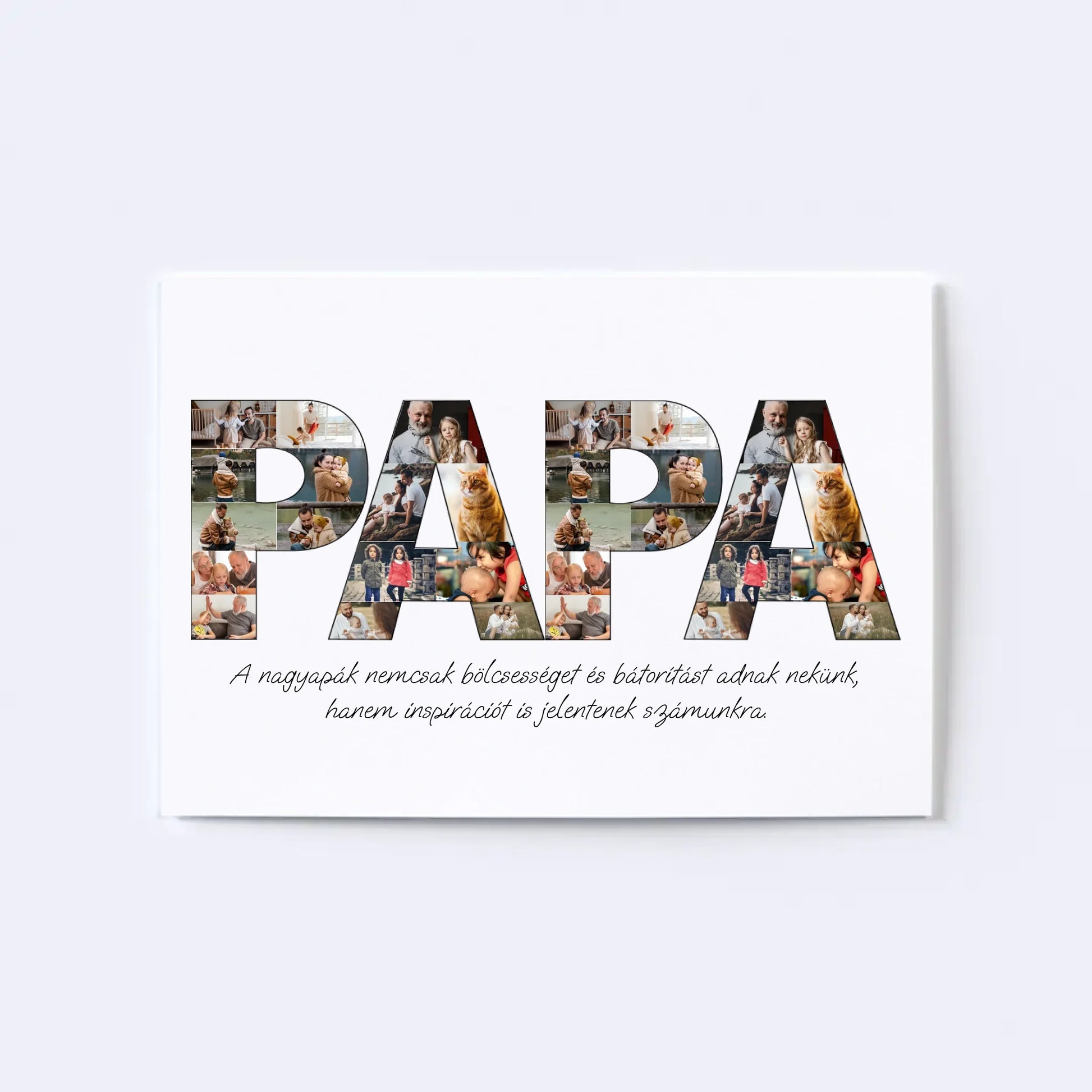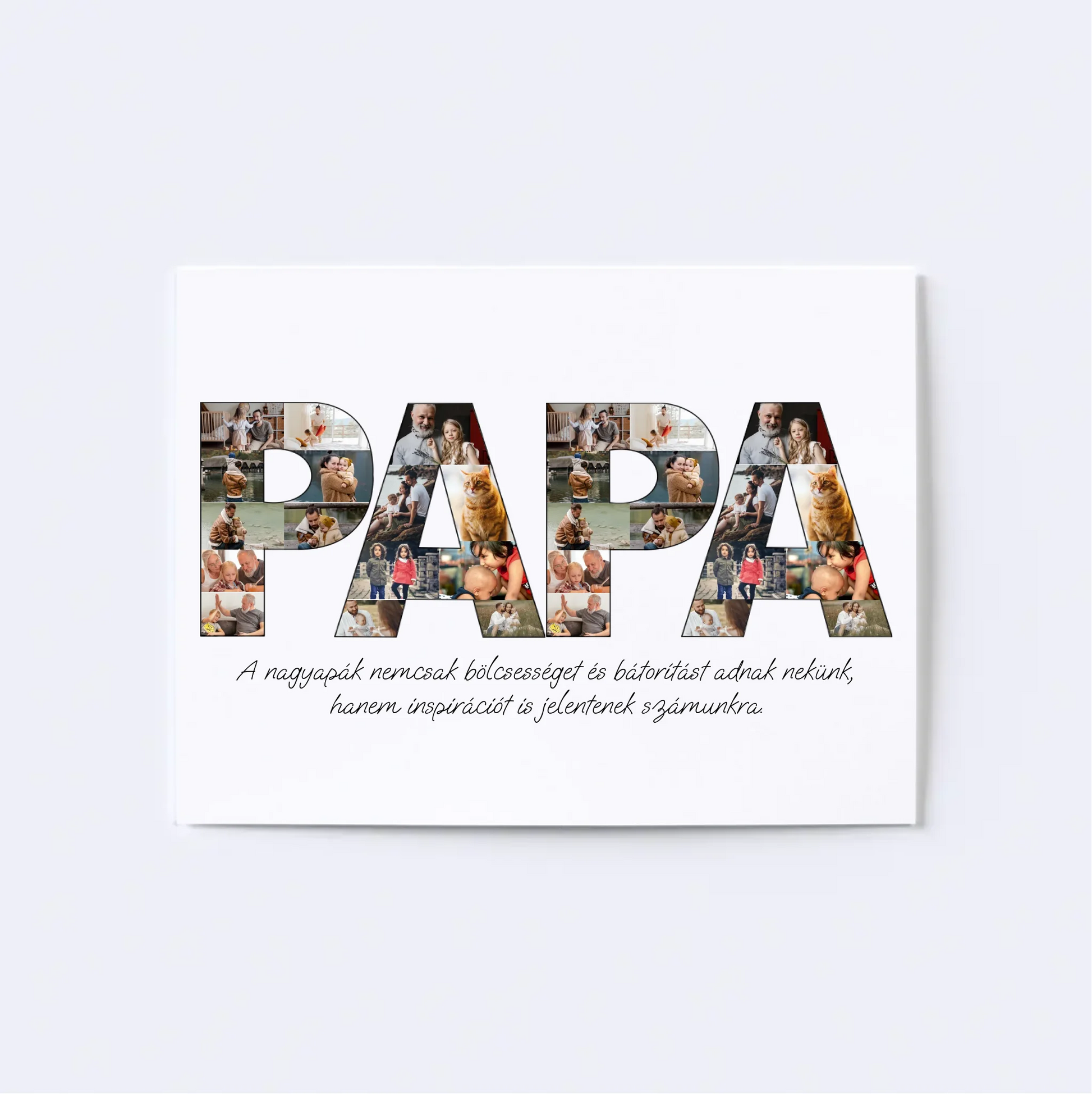 Az egyedi fotókollázs készítőt használva tökéletes faliképet készíthetsz nagypapádnak ajándékba. Kiváló, kreatív ajándék ötlet nagypapák születésnapjára, illetve Apák napjára.