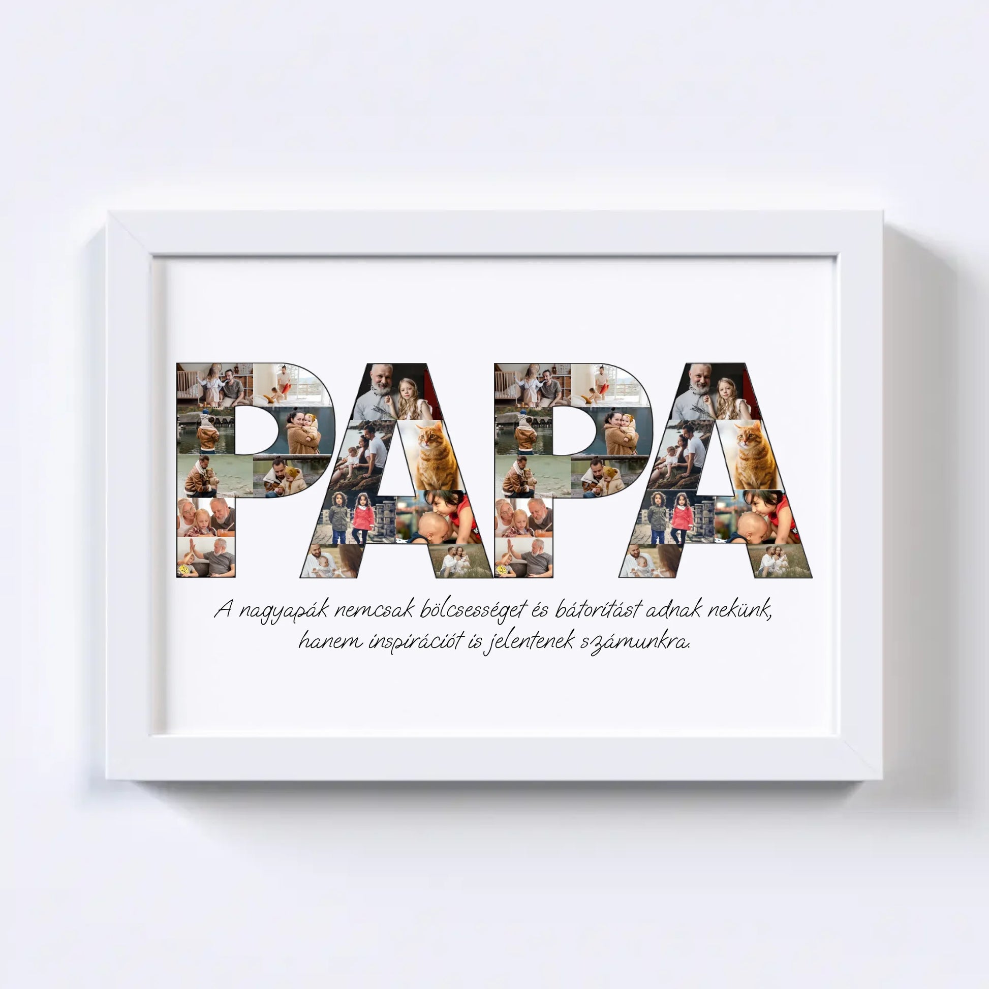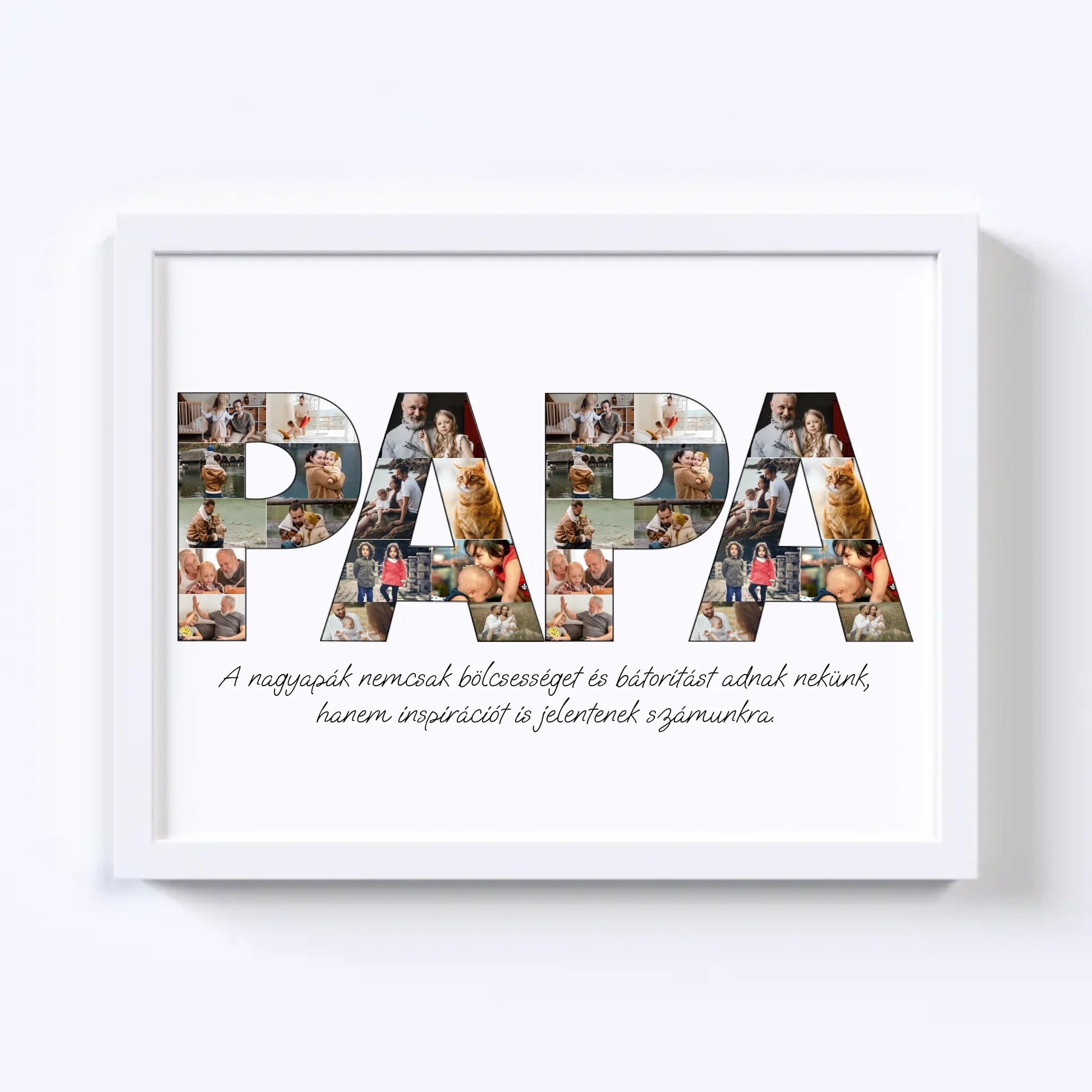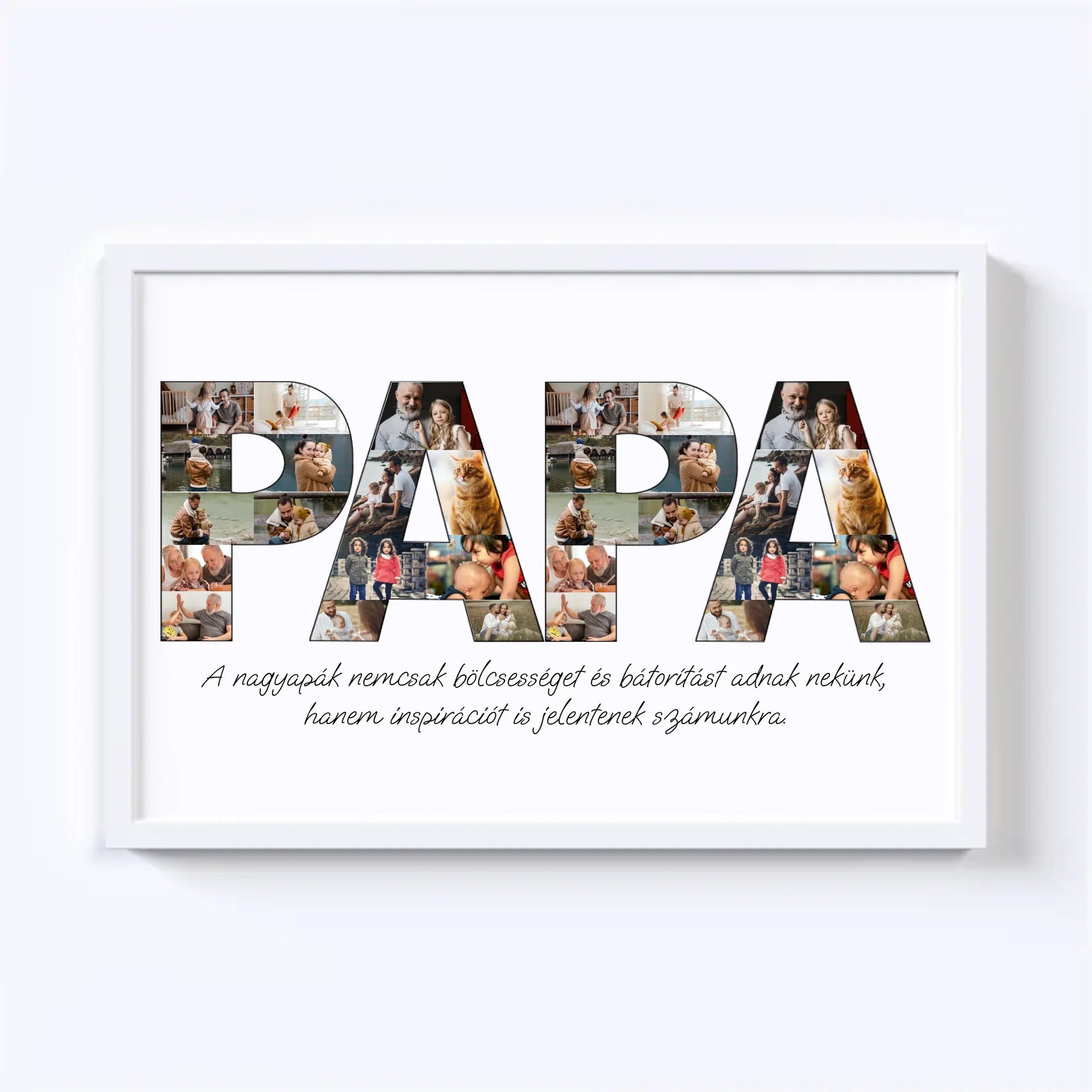Az egyedi fotókollázs készítőt használva tökéletes faliképet készíthetsz nagypapádnak ajándékba. Kiváló, kreatív ajándék ötlet nagypapák születésnapjára, illetve Apák napjára.