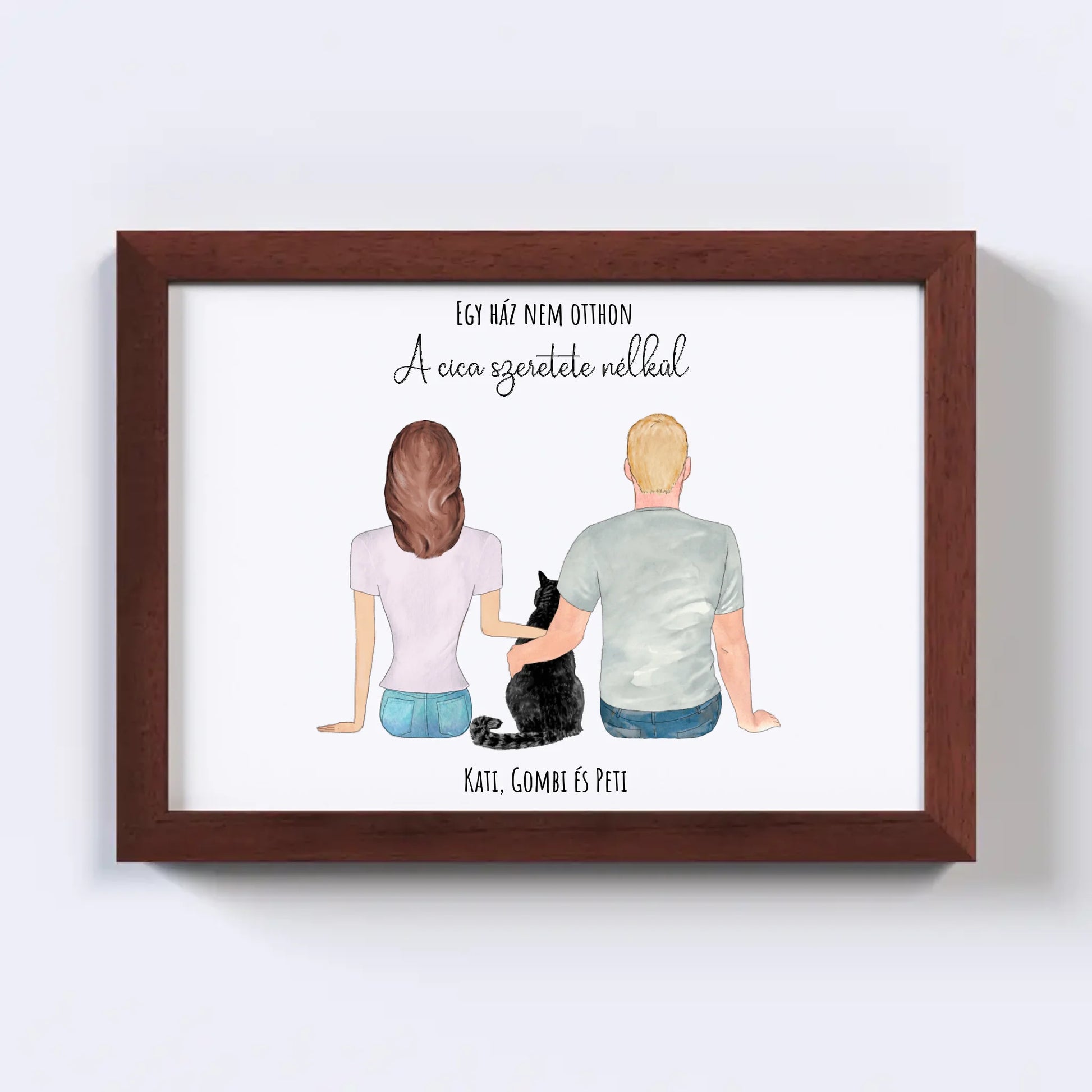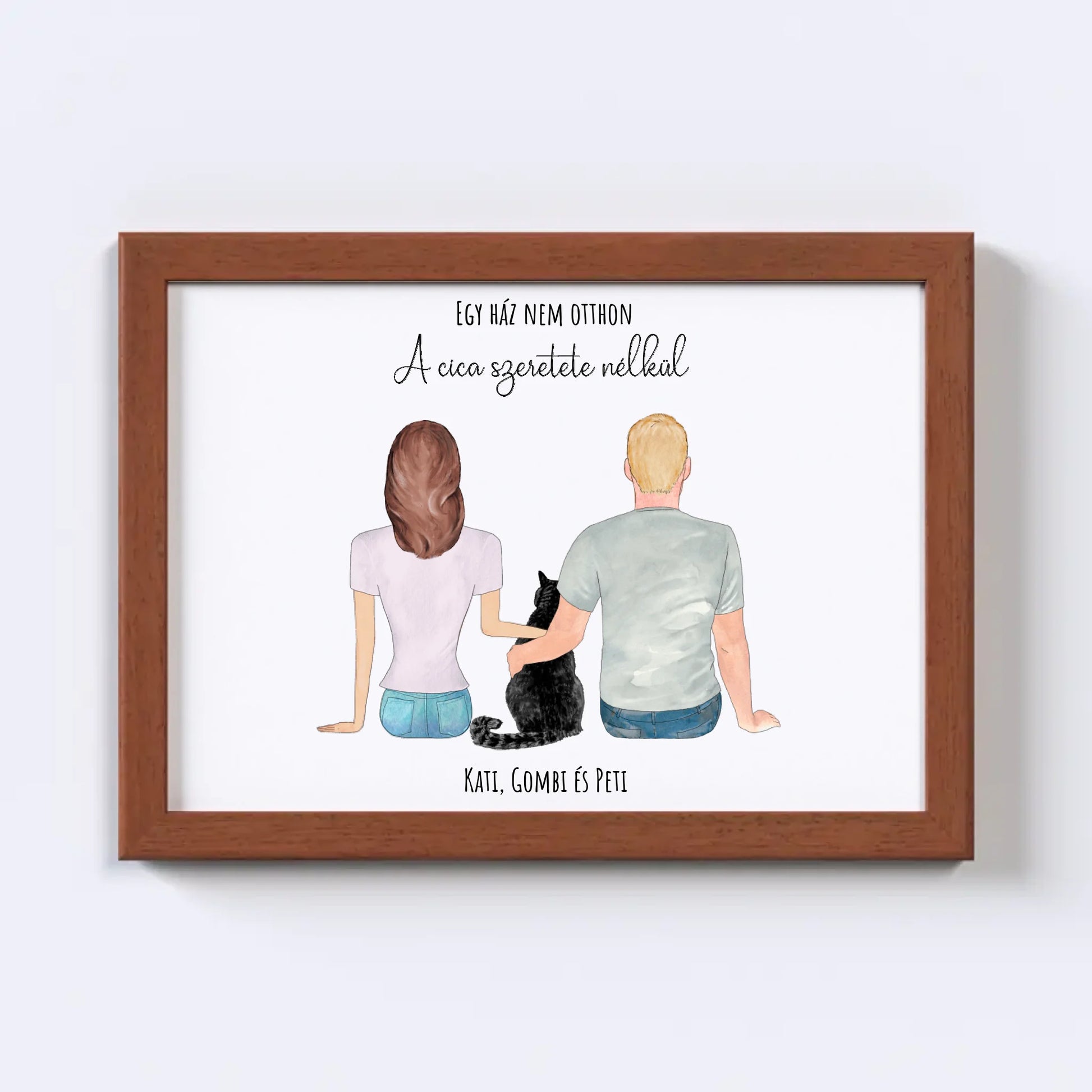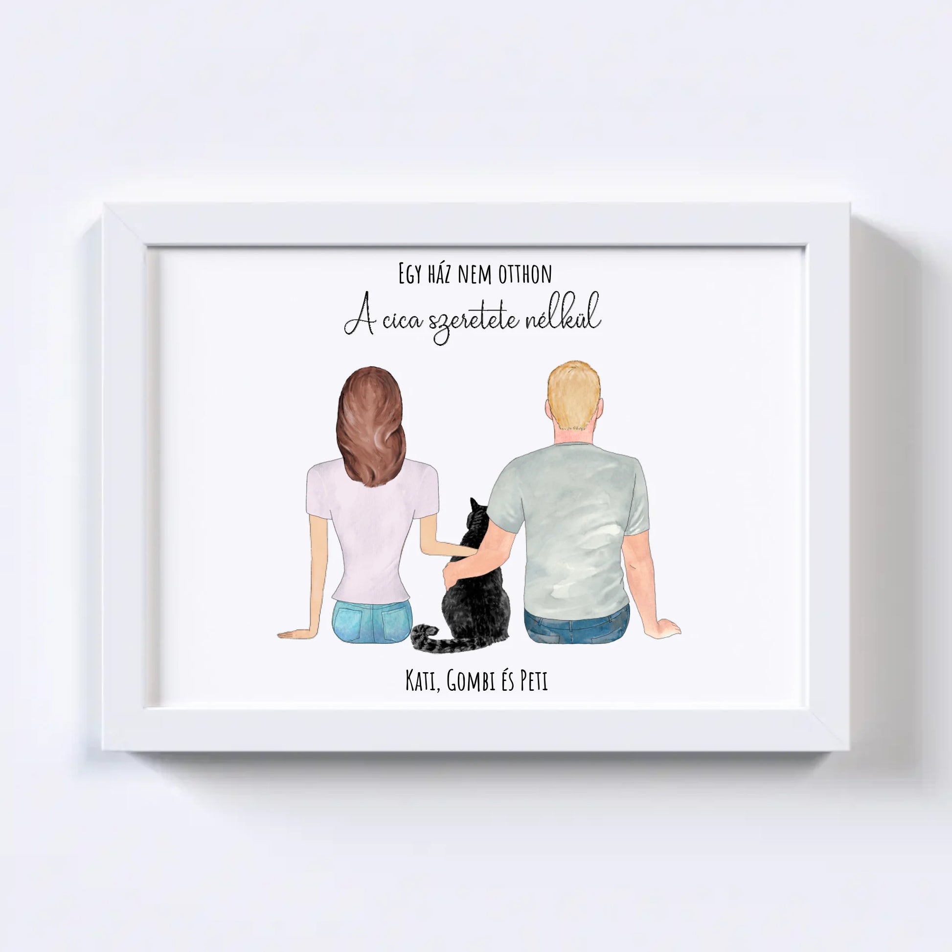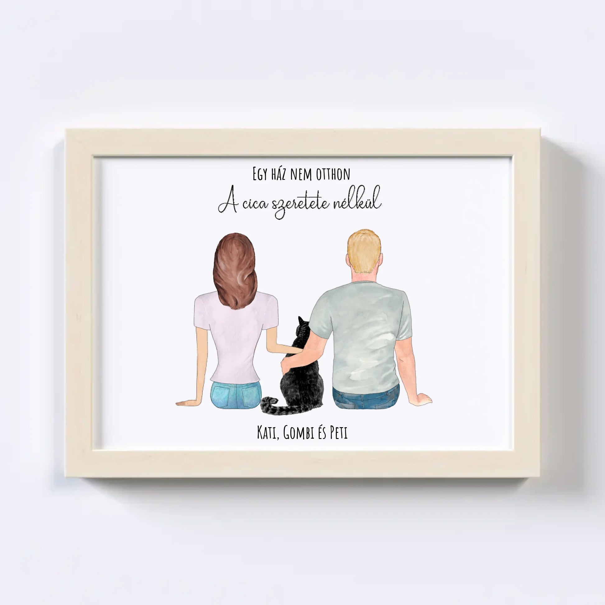 Szerelmes Pár És Cicájuk Egyedi Falikép - Idézettel