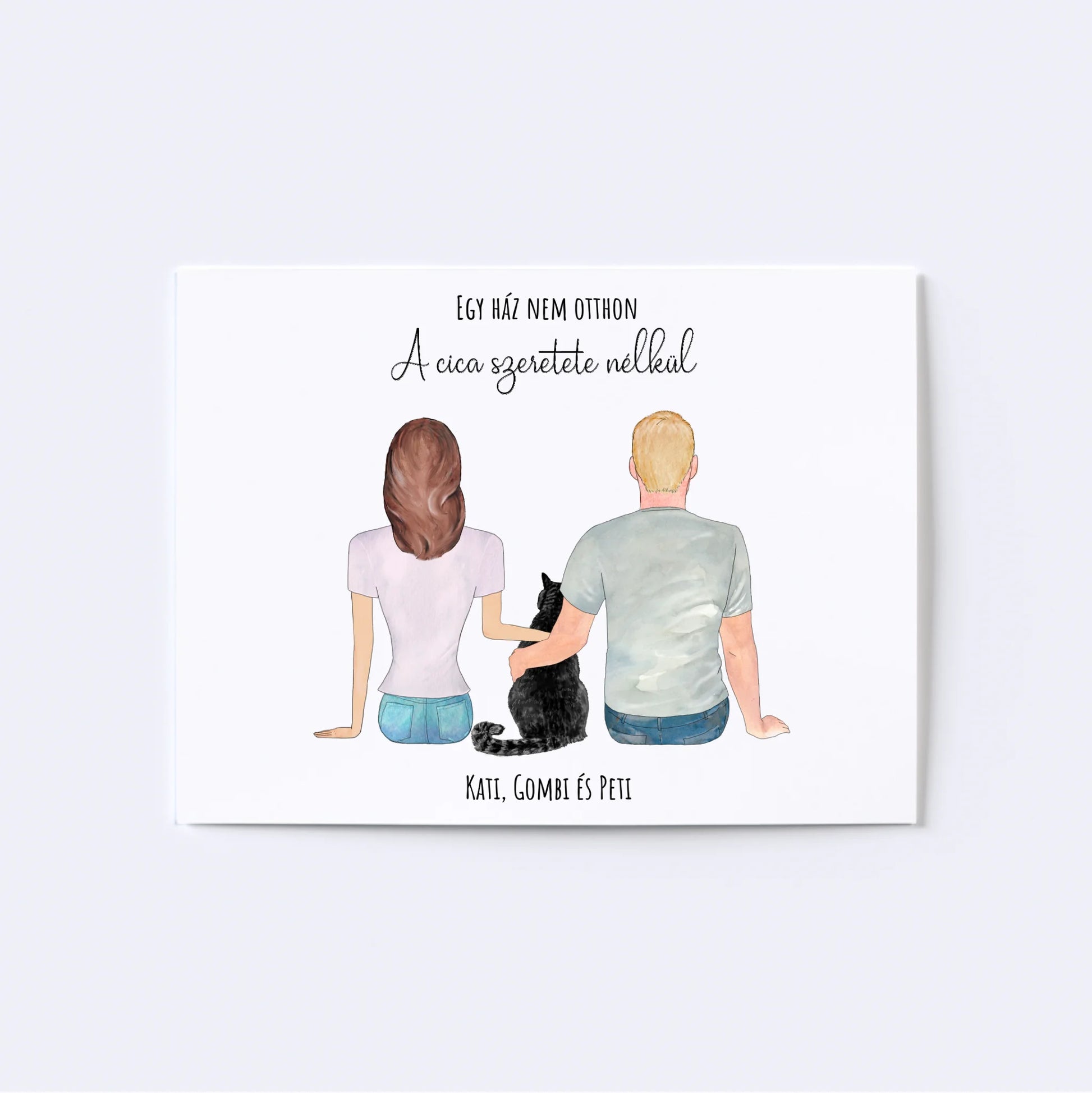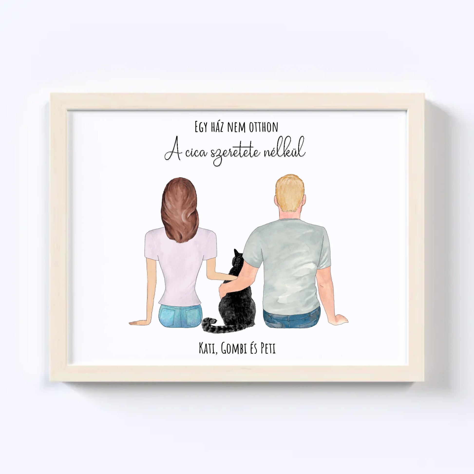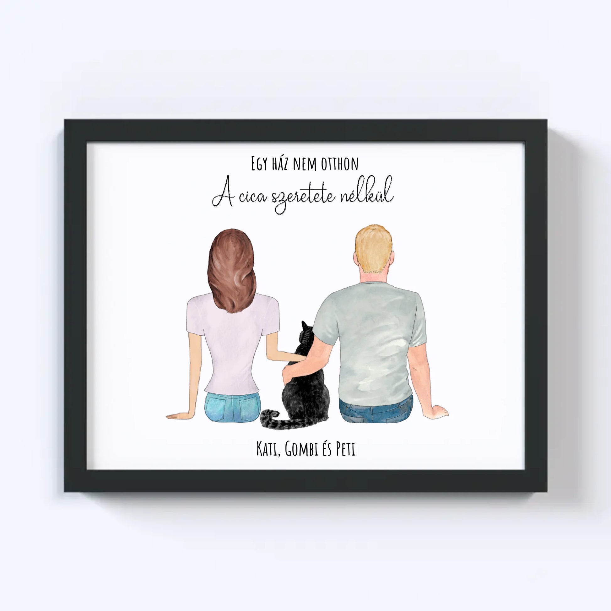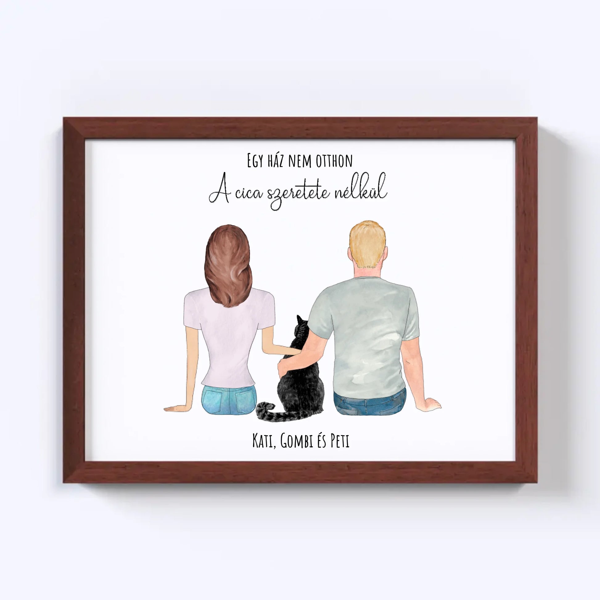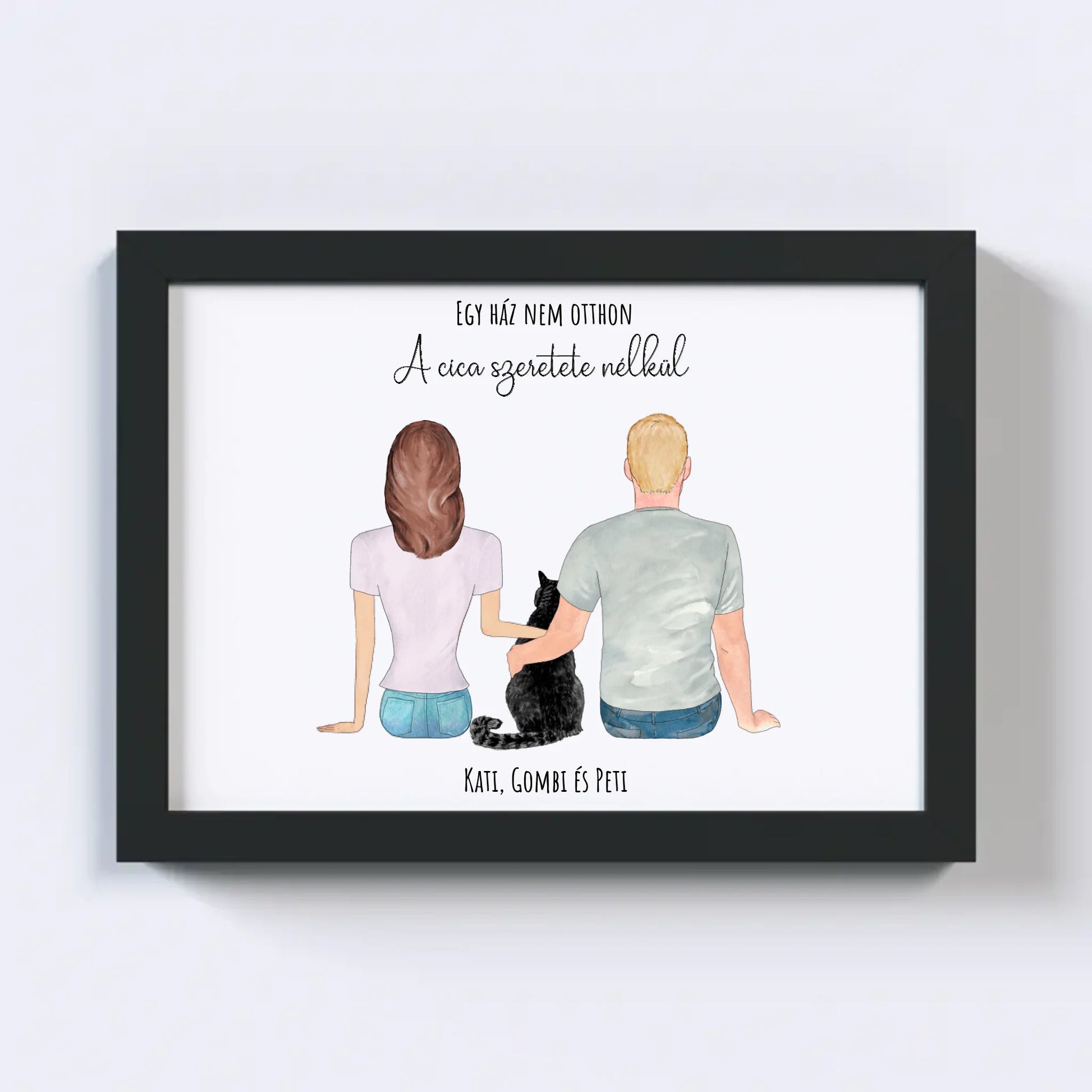 Szerelmes Pár És Cicájuk Egyedi Falikép - Idézettel