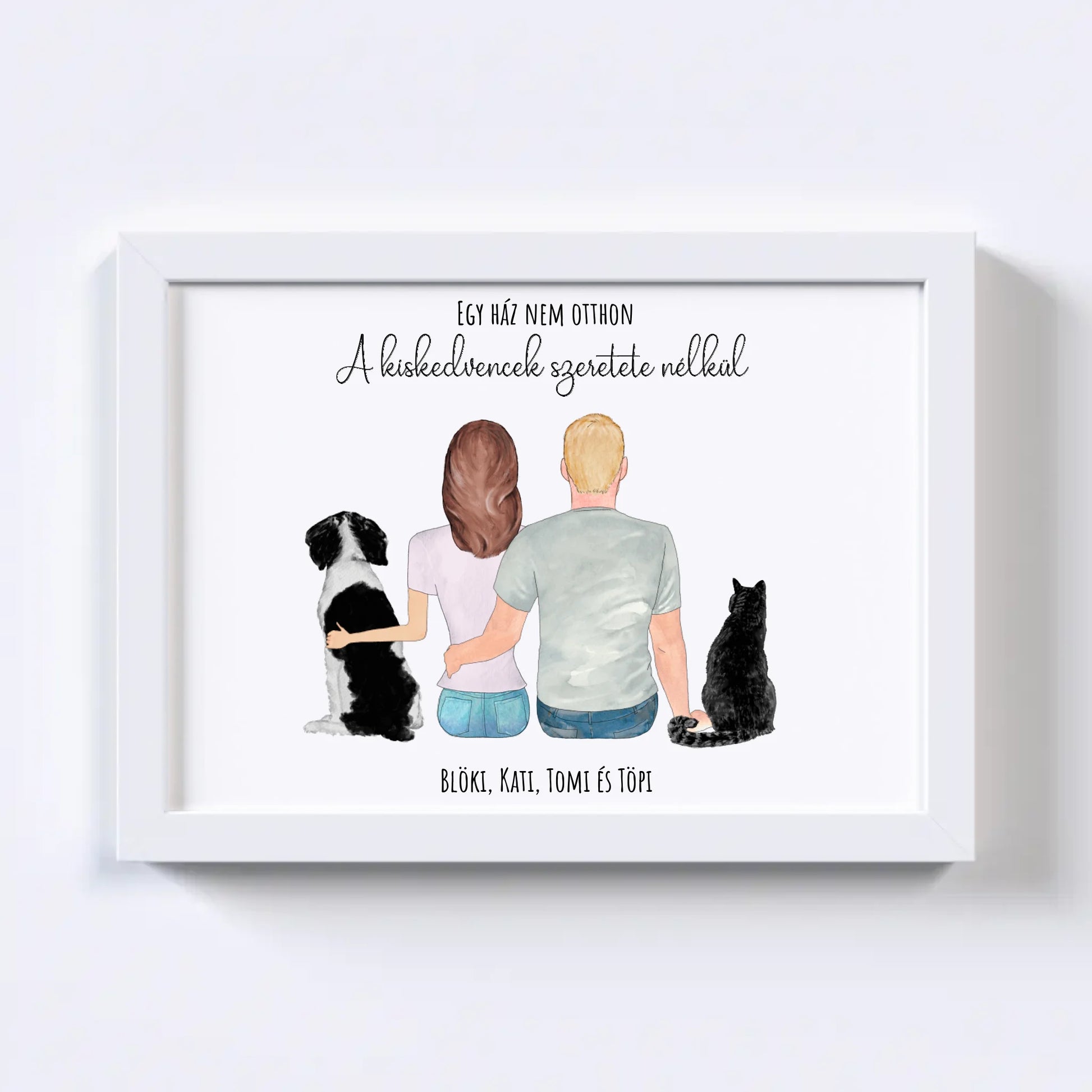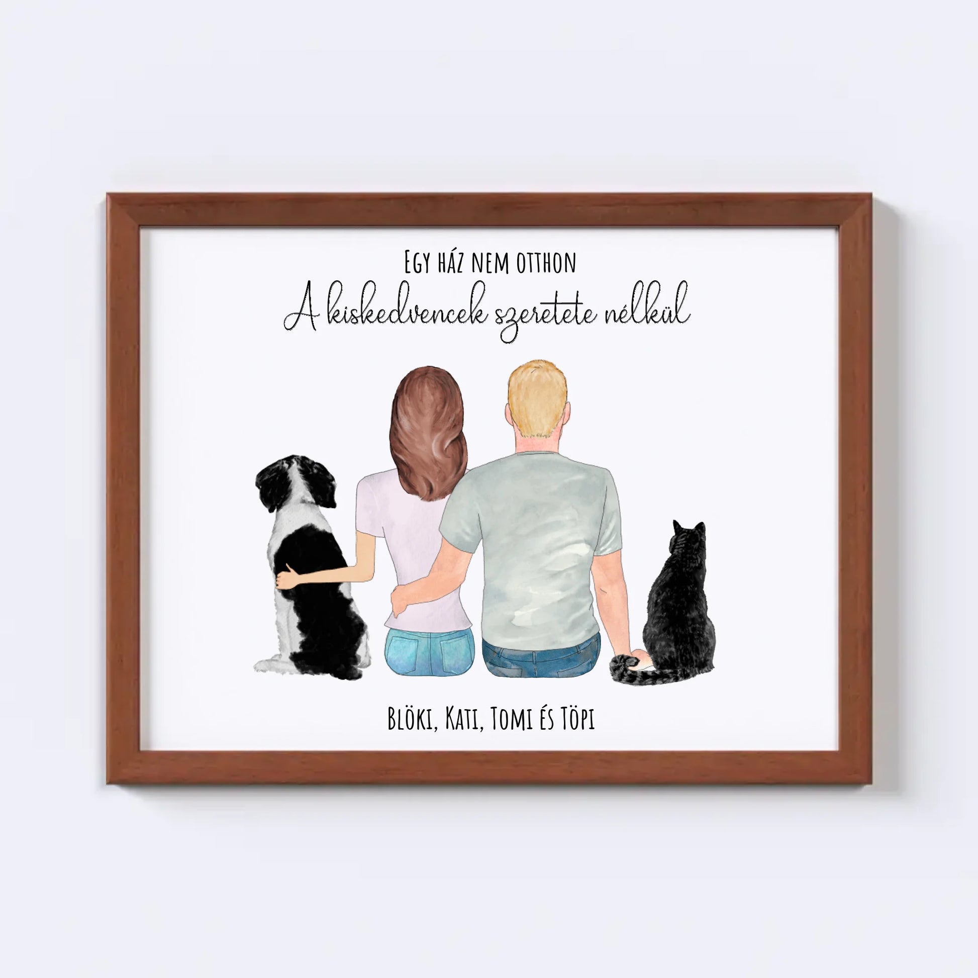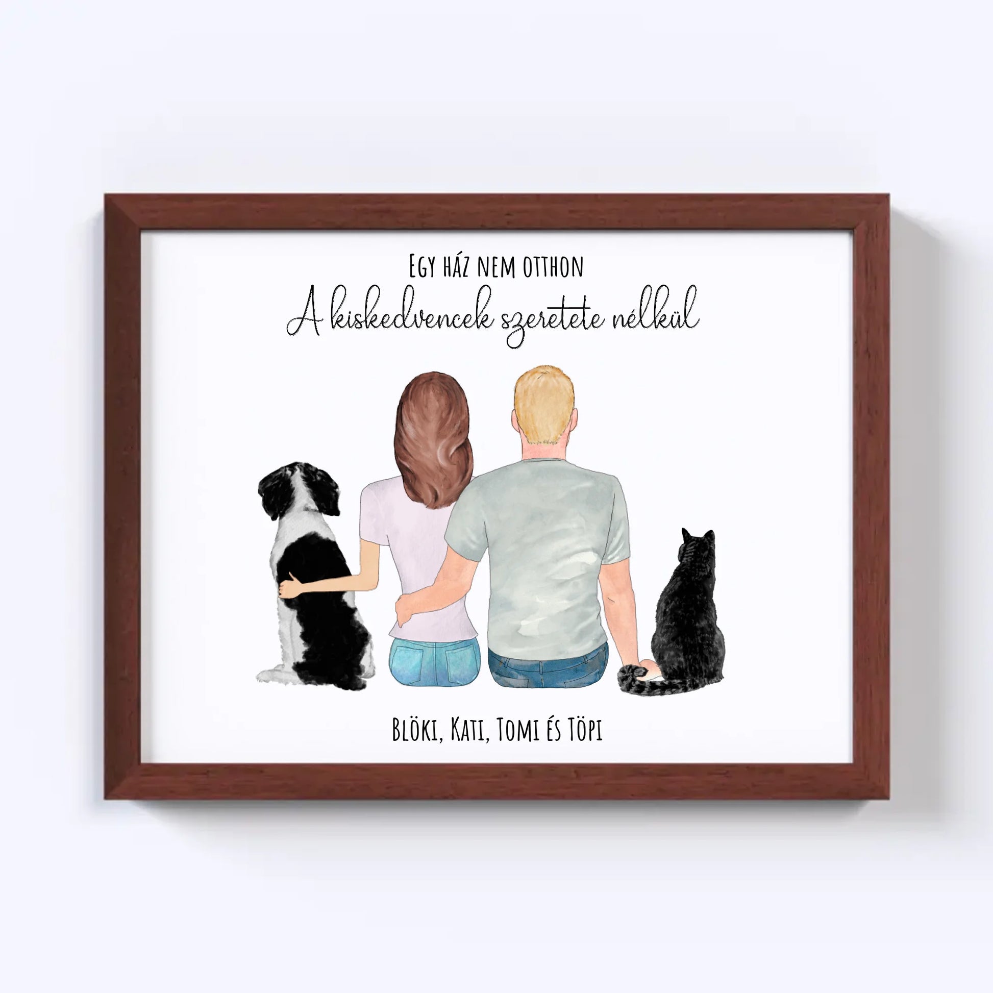 Szerelmes Pár És Kettő Kiskedvencük Egyedi Falikép - Idézettel