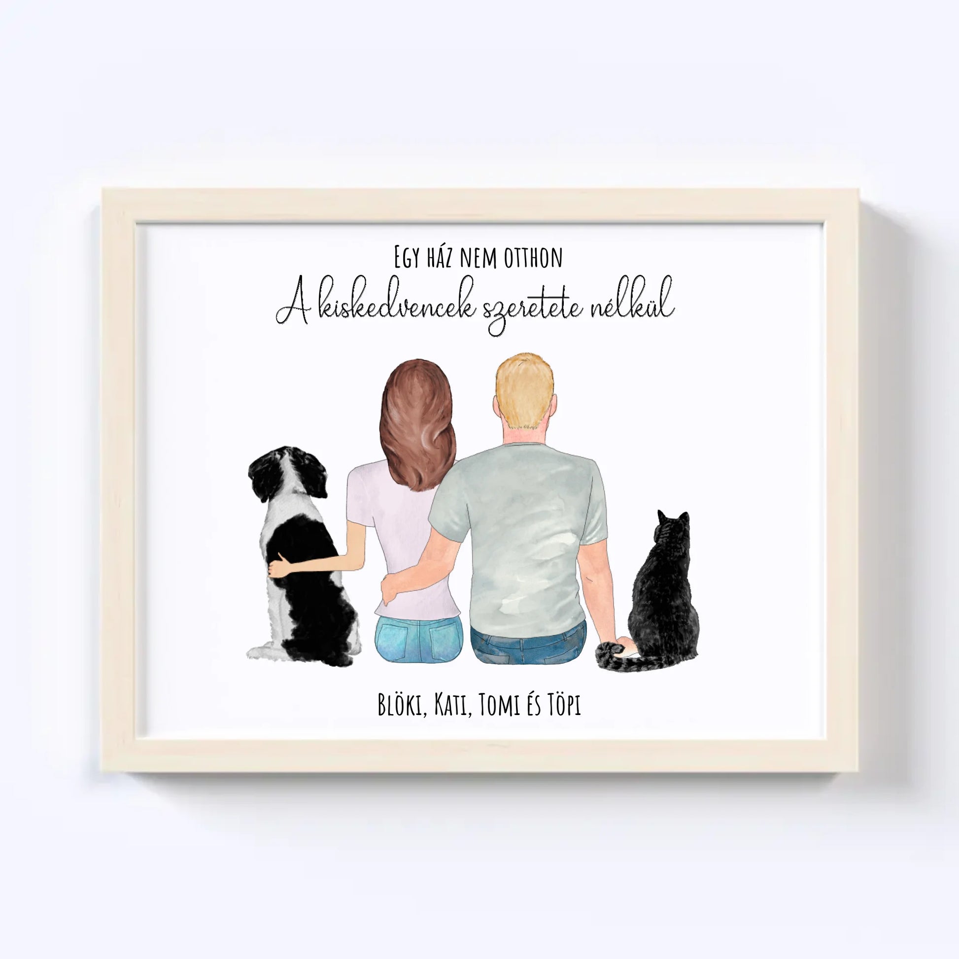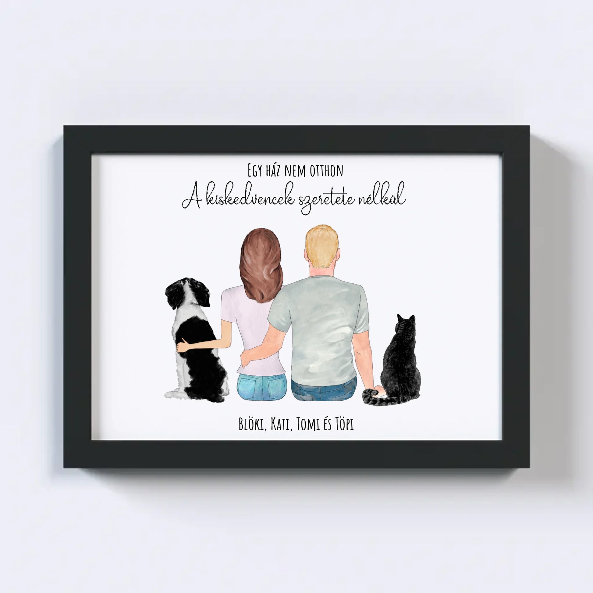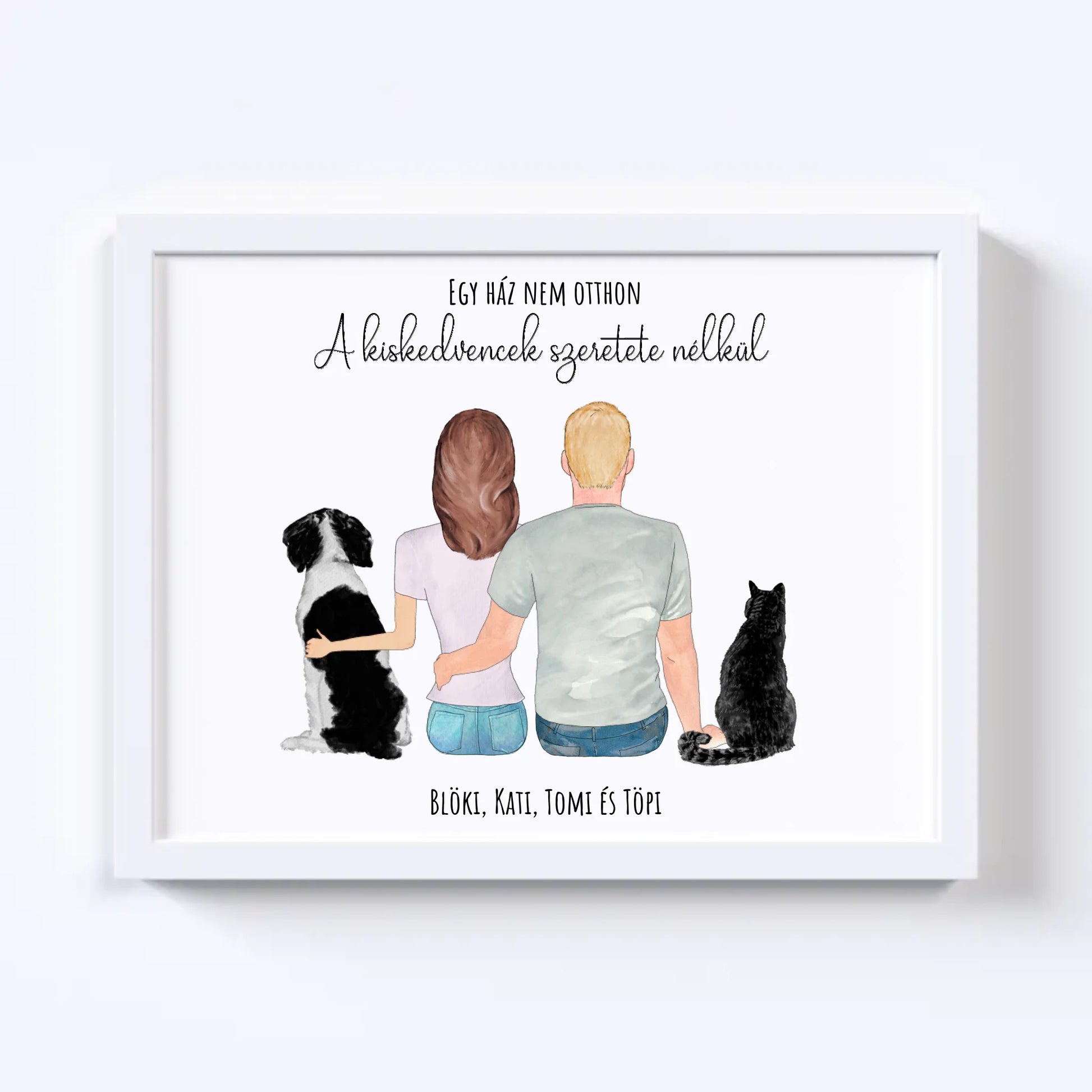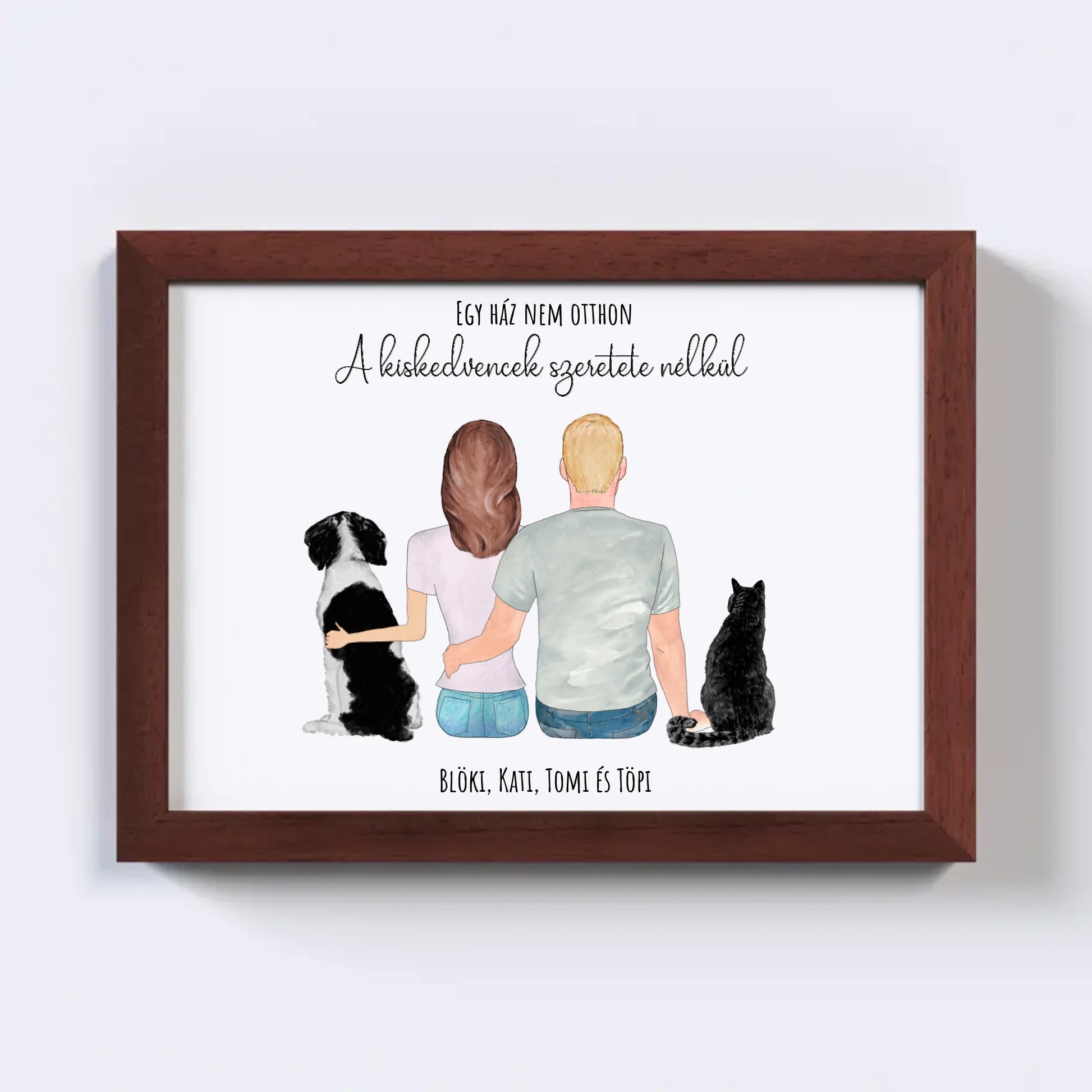 Szerelmes Pár És Kettő Kiskedvencük Egyedi Falikép - Idézettel