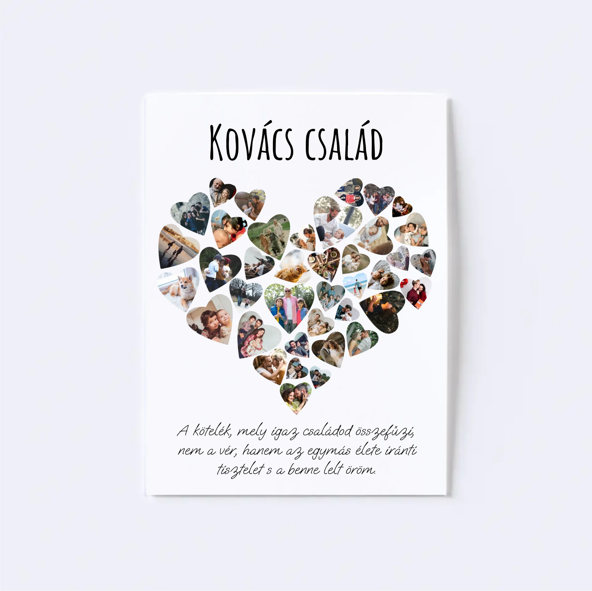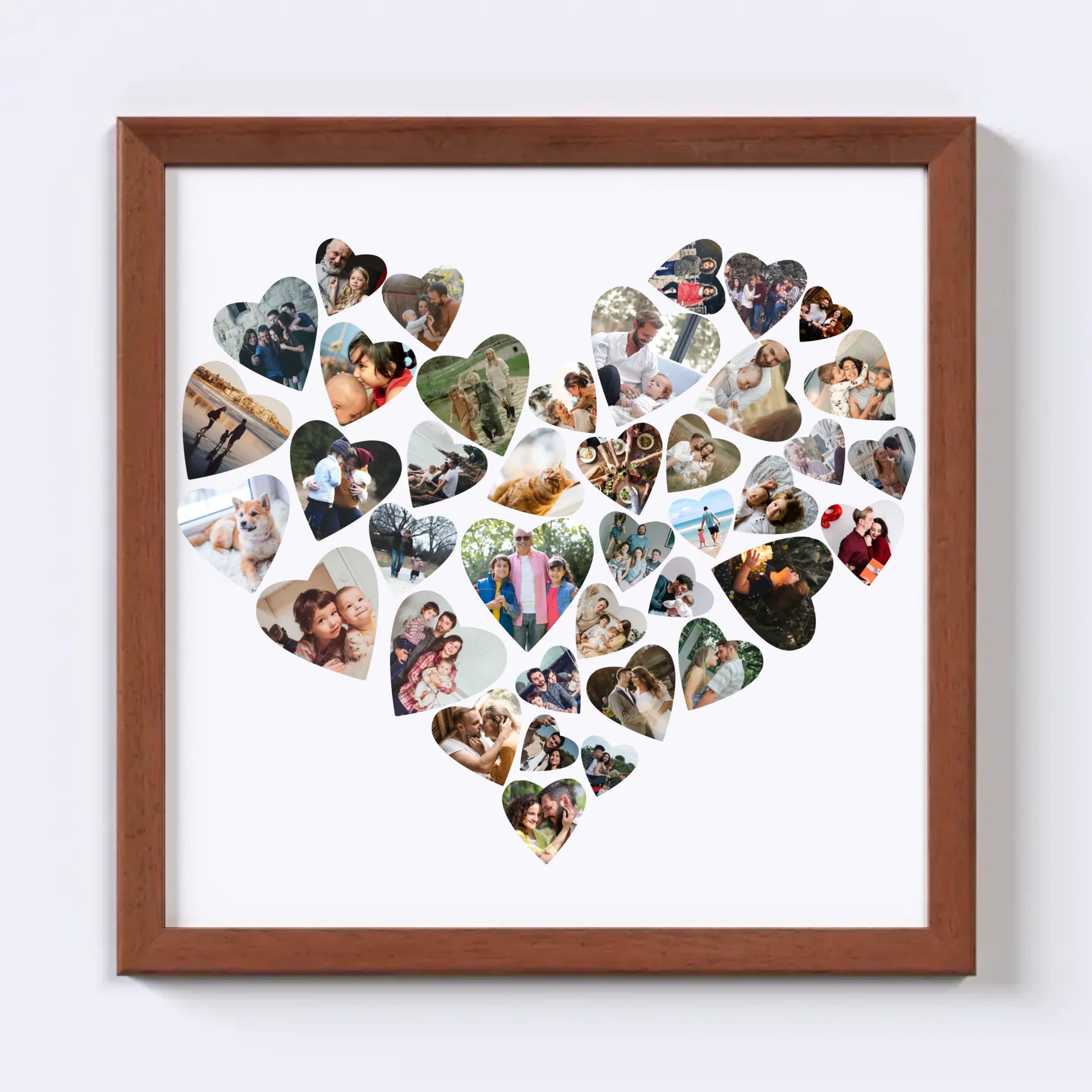 Az egyedi, szív alakú fotókollázs készítőt használva tökéletes faliképet készíthetsz hozzátartozóidról, amely tökéletes ajándék minden alkalomra.